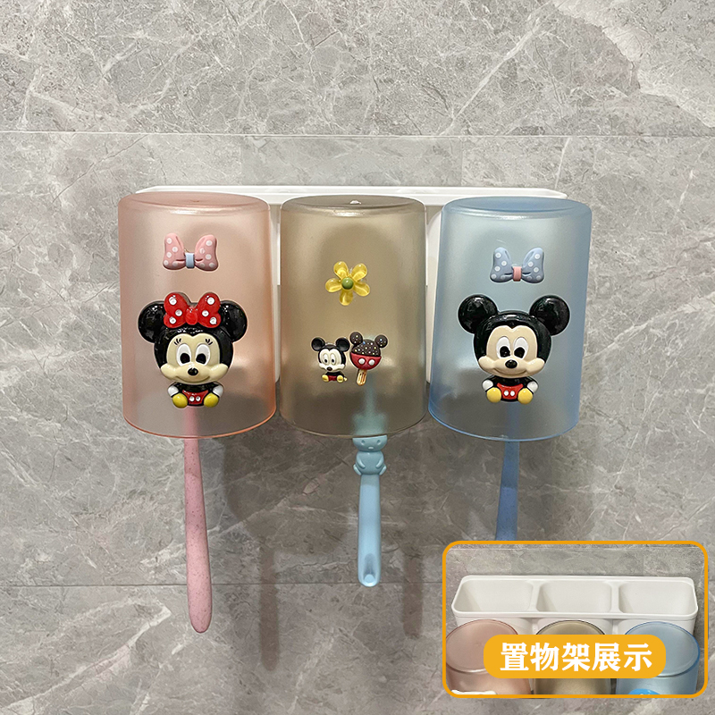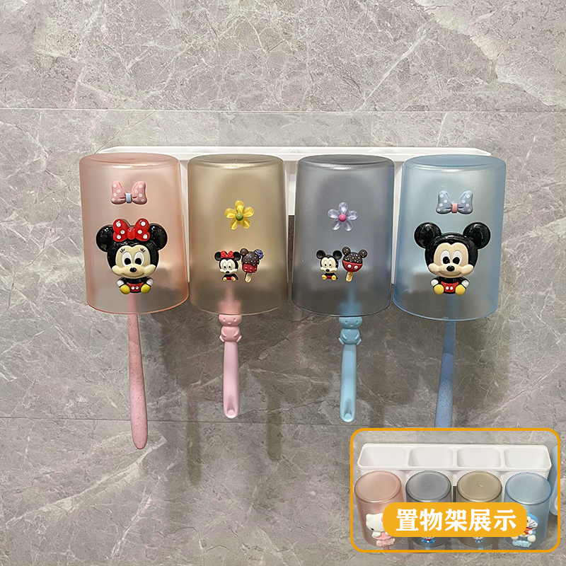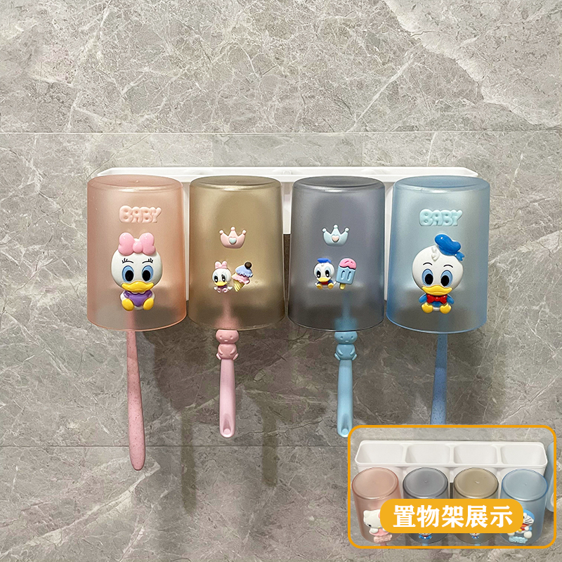 Punch-free wall-mounted storage drain cute couple toothbrush holder cartoon brushing cup mouthwash cup set device rack