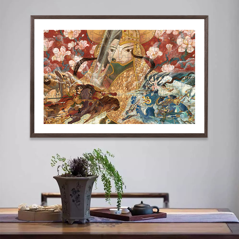 New Jane European photo frame 300 pieces of Mulan speech 512 pieces of falling god Fu Lanting sequence Guochao puzzle picture frame with cardboard mounting