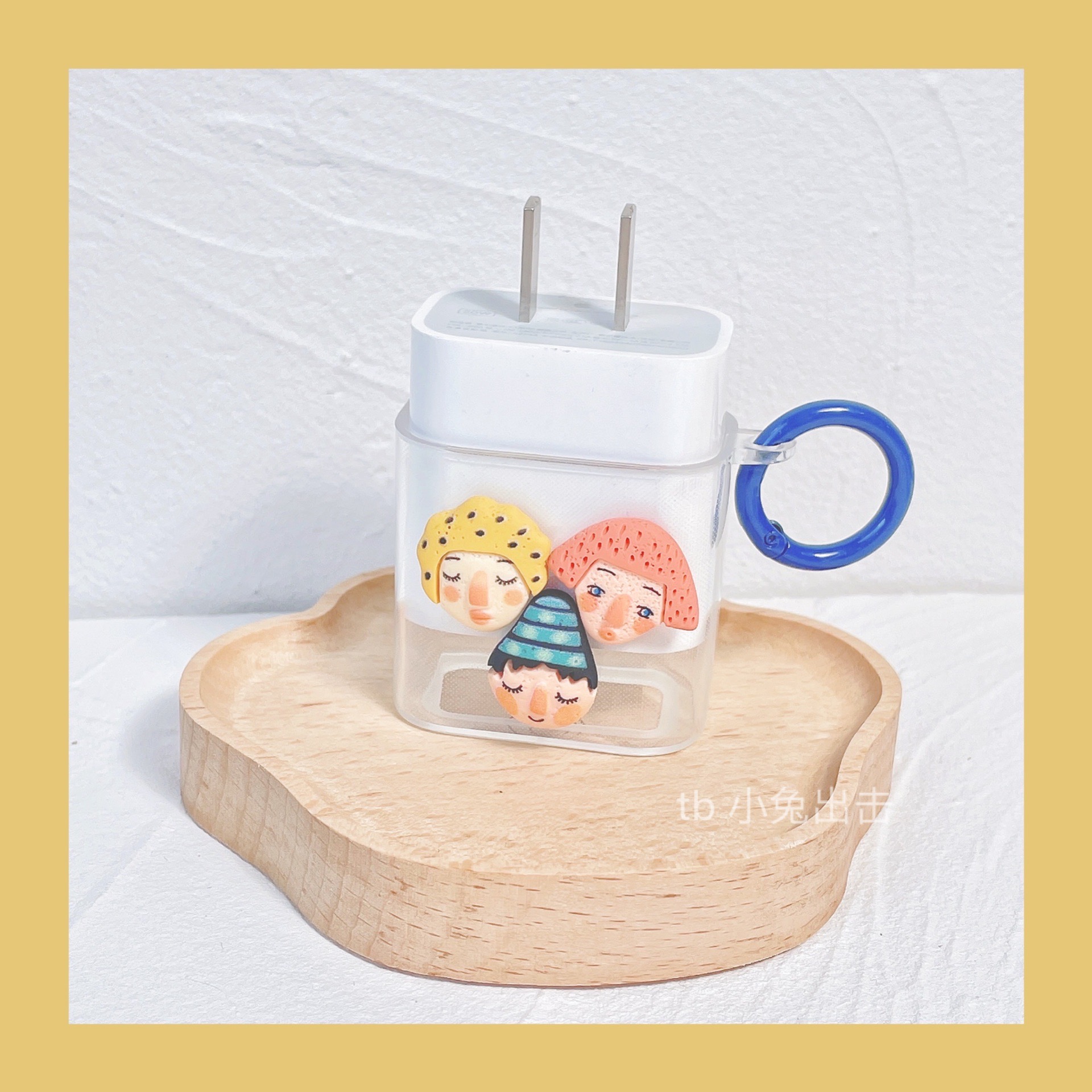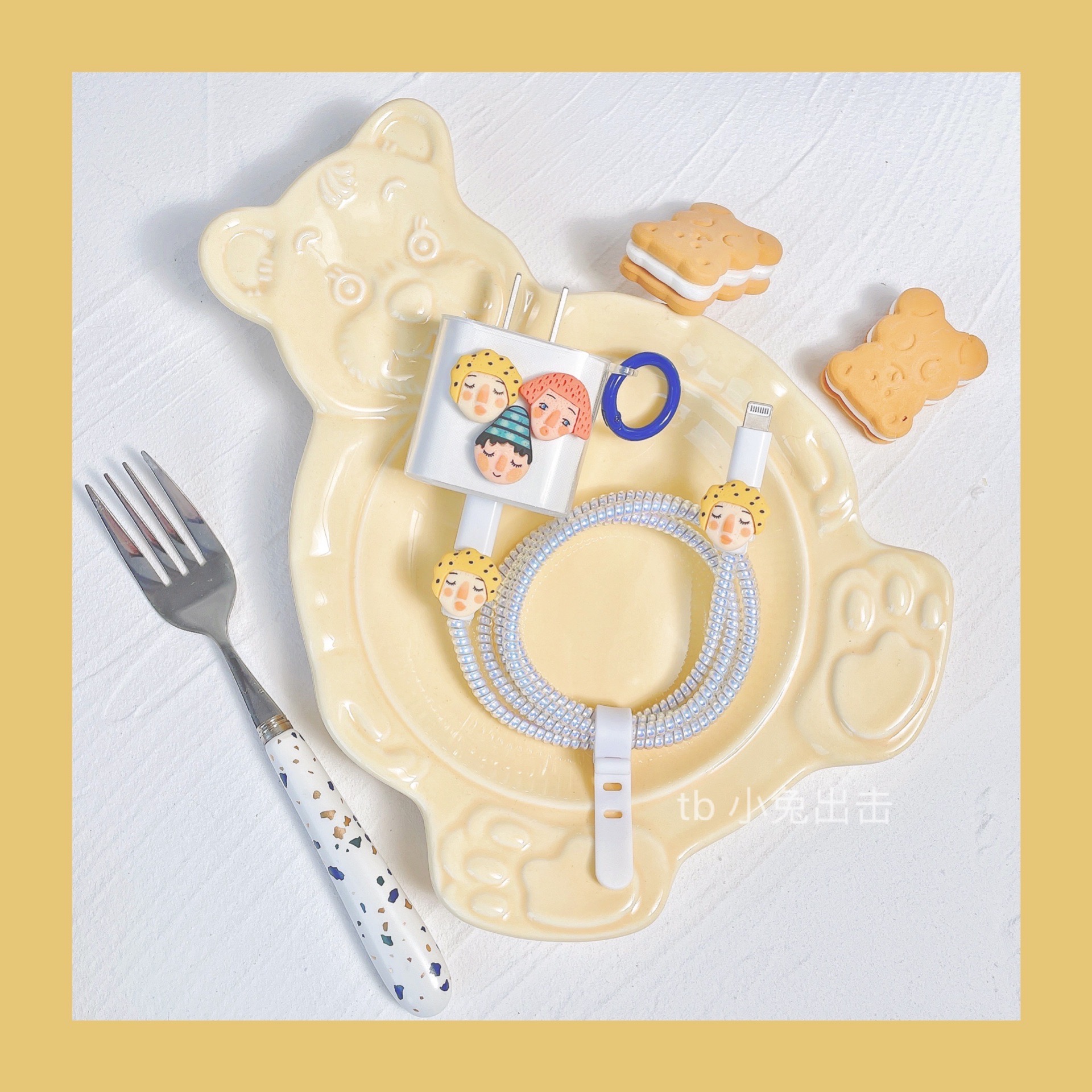 Hook three-person graffiti charger transparent sleeve hook clip three-person graffiti sleeve Data cable protection hook clip three-person graffiti sleeve Data cable protection Laser white data cable protection Laser powder data cable protection