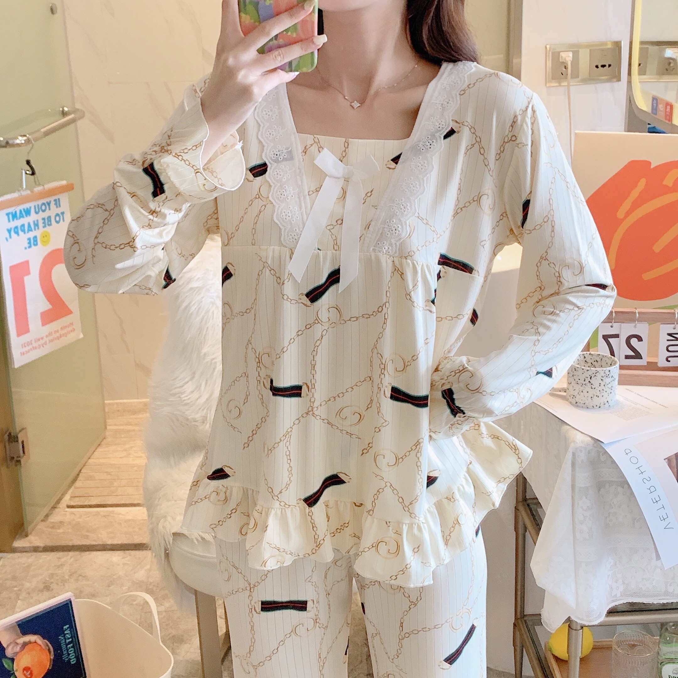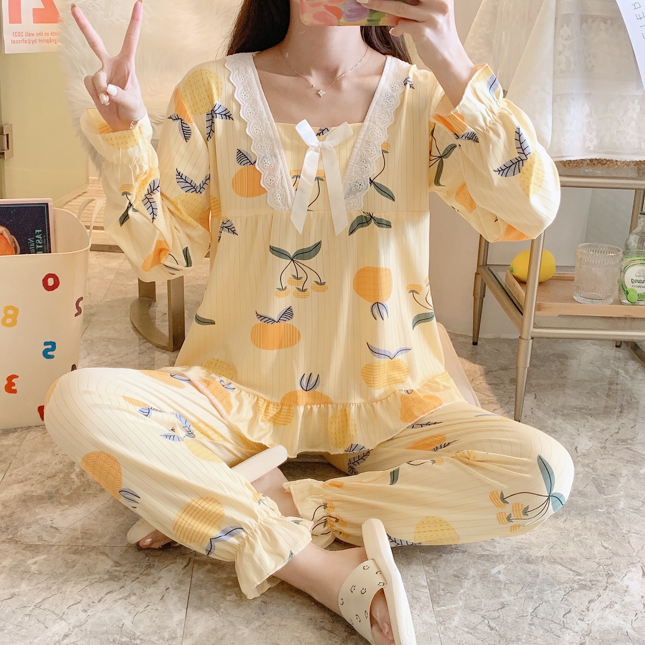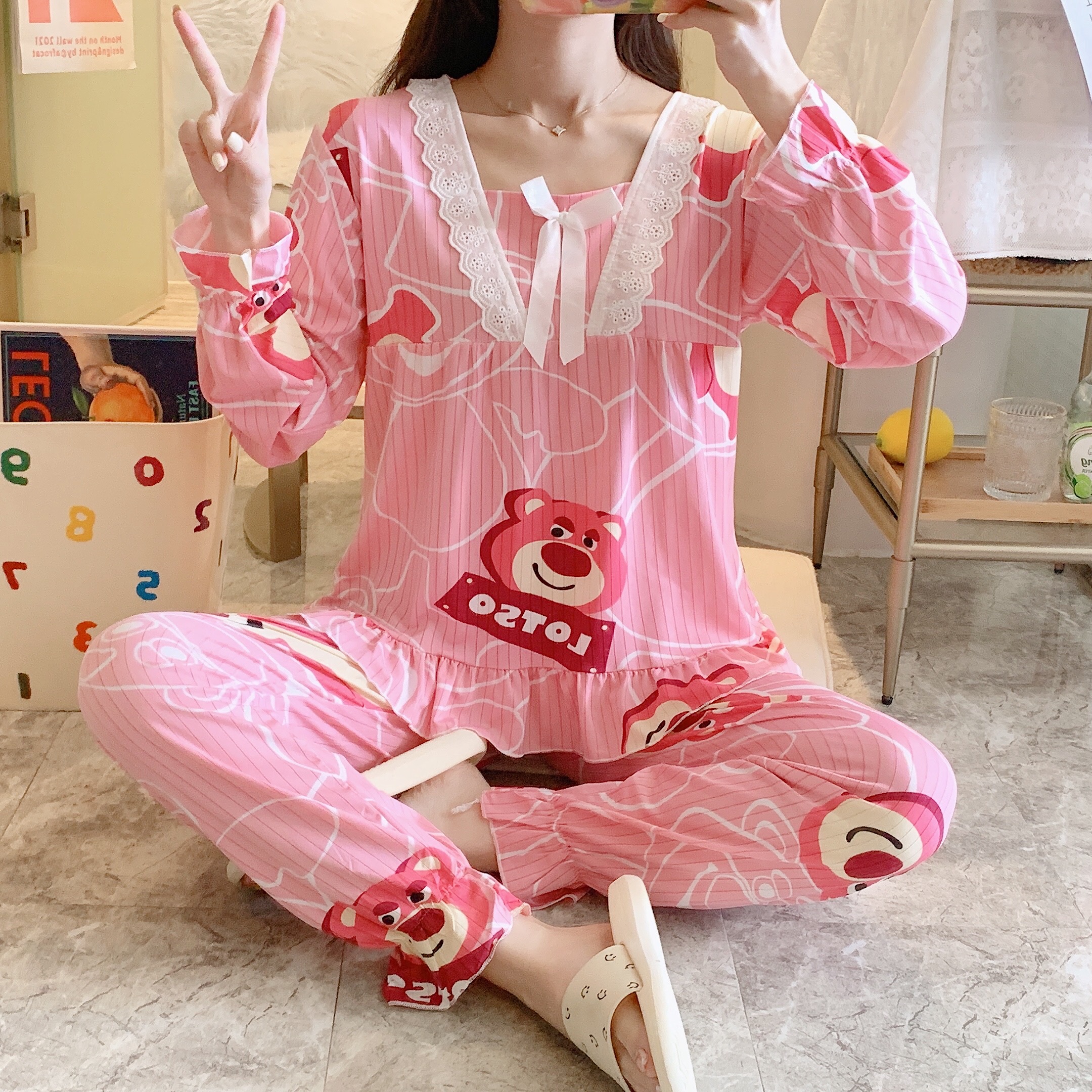 Sleepwear Woman 2022 New Spring Autumn Pure Cotton Long Sleeve Lunar Subsuit Head Home Conserved Two-piece Suit Summer Little Bear