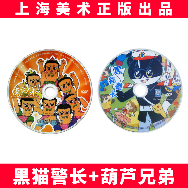 Genuine Shanghai Fine Arts Classic Children's motion picture dvd light disc black cat sheriff's gourd brother 2DVD