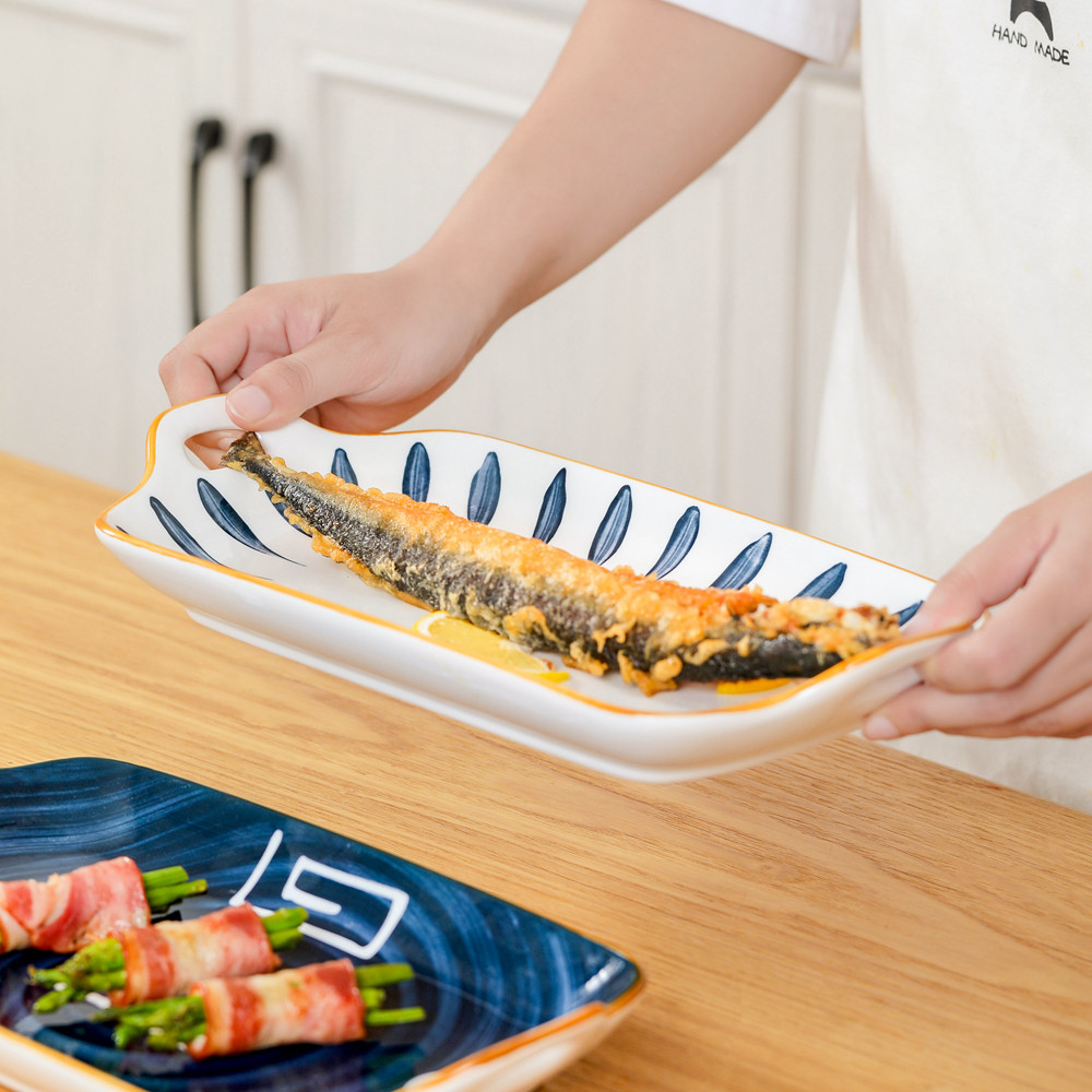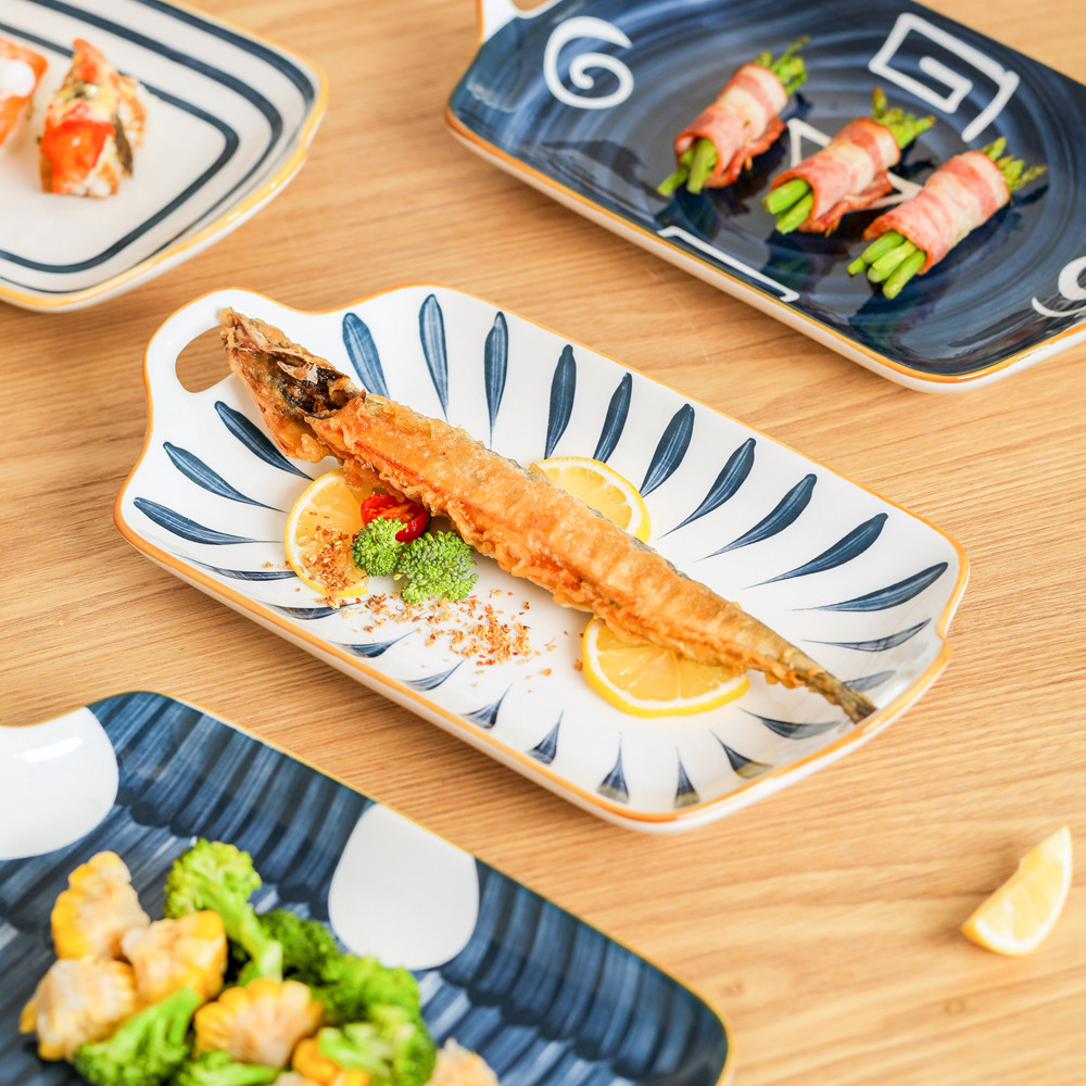 Japanese-style binaural fish plate household large steamed fish plate 2021 new ceramic tableware plate plate rectangular plate