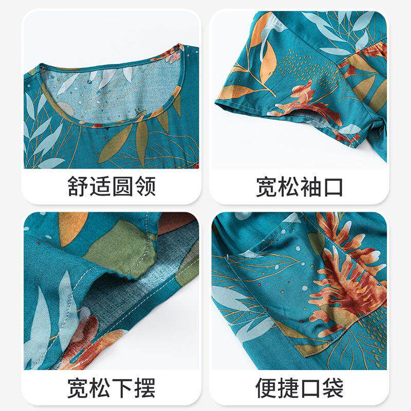 Pajamas women's summer mother cotton silk pajamas set middle-aged and elderly short-sleeved home clothes large size elderly pajamas can be worn outside
