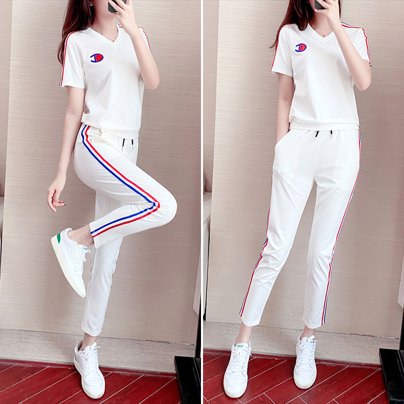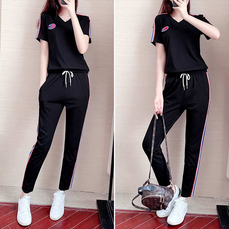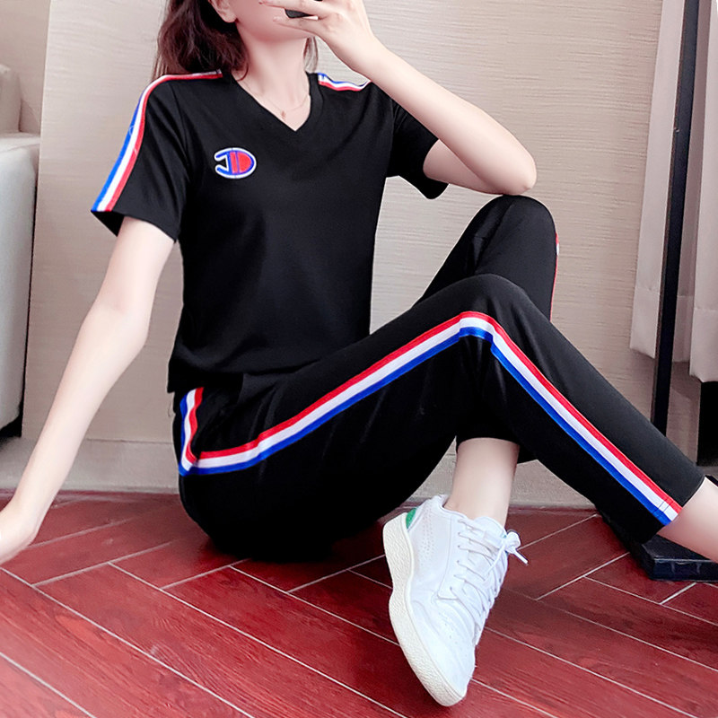 European station ice silk casual sports suit female summer large size thin section 2022 new fashion short-sleeved two-piece trend