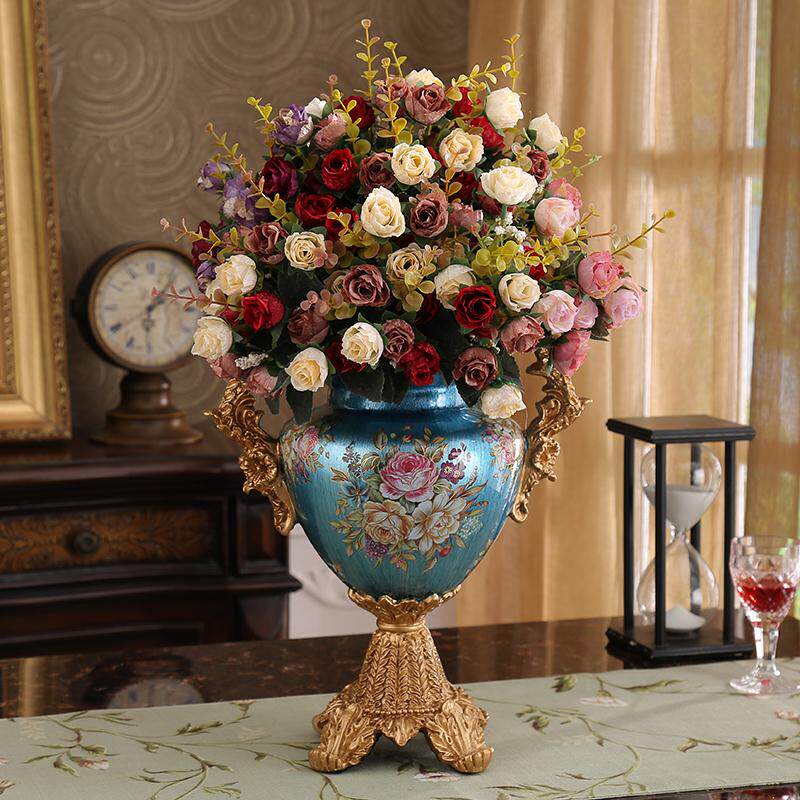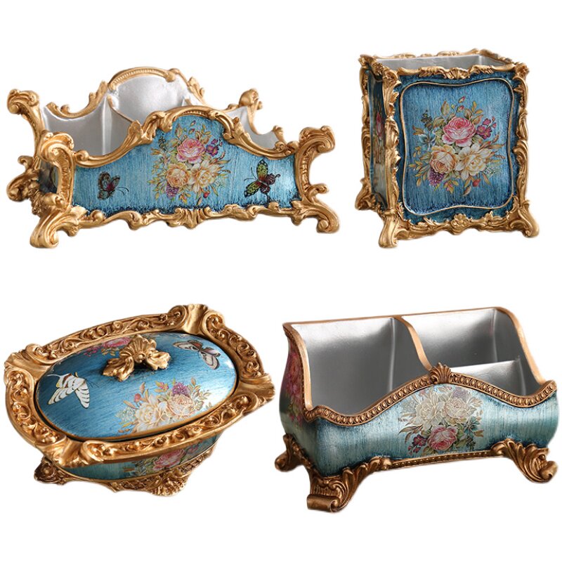 Blue royal blue peacock blue Transparent navy blue color dark blue sky blue pearlescent powder Ashtray Pearlescent powder multi-function tissue box Blue jewelry box Blue vase Blue vase 4 bundles of purple safflower Blue vase