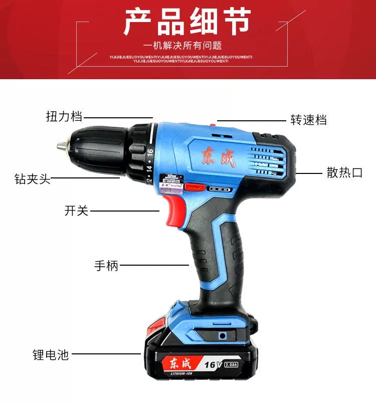 Dongcheng 16V brushless electric drill electric screw screwdriver rechargeable home electric power electric drill east into lithium electric electric drill