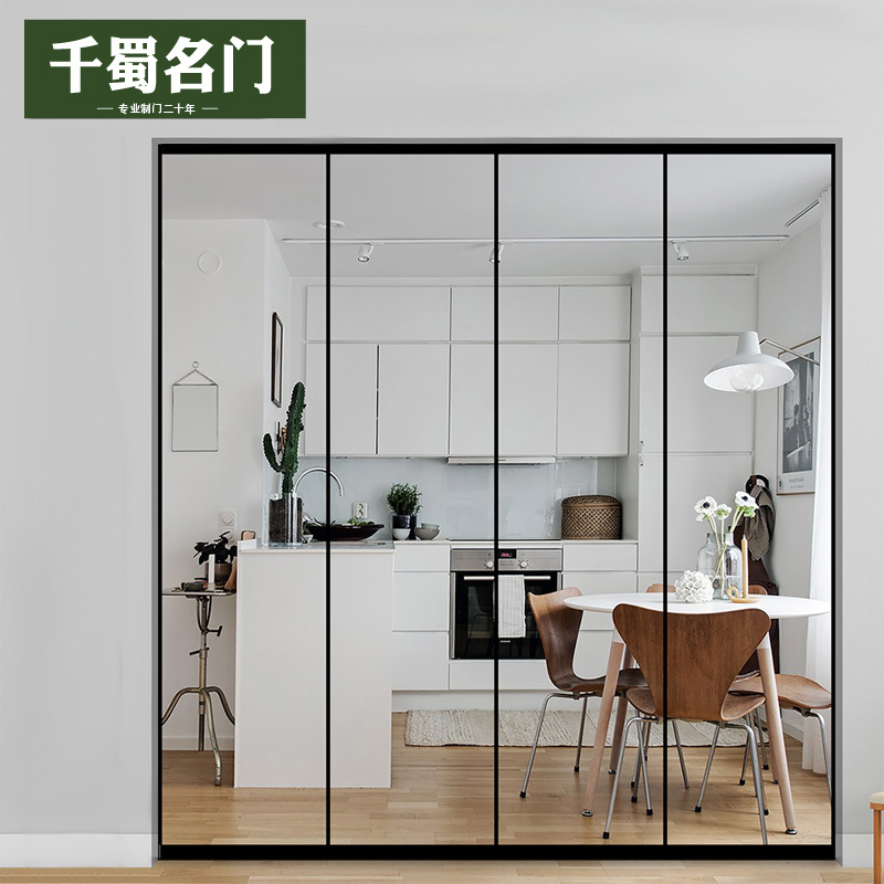 Double push-pull three linkage four push-pull single sector Barn Door Double Fan Barn Door Mark transparent or frosted glass Upgrade ultra white Changhong Every flat 100 Full house door class Custom special film