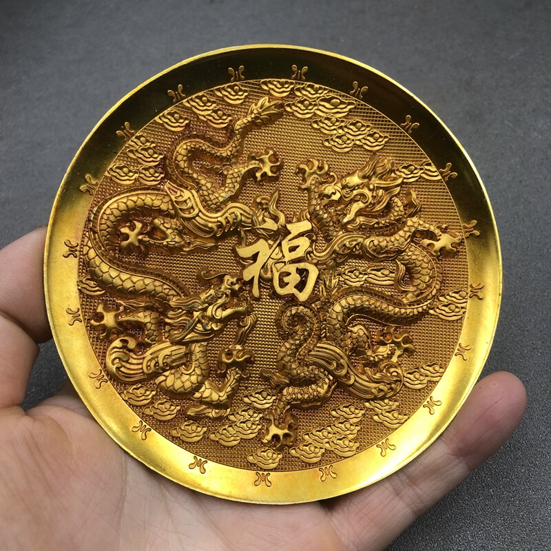 Antique Miscellaneous Twin Dragon Dish Dish Plate Fu Ding Cup Cup Insulation Pad Gold Double Disk Household Swing Parts