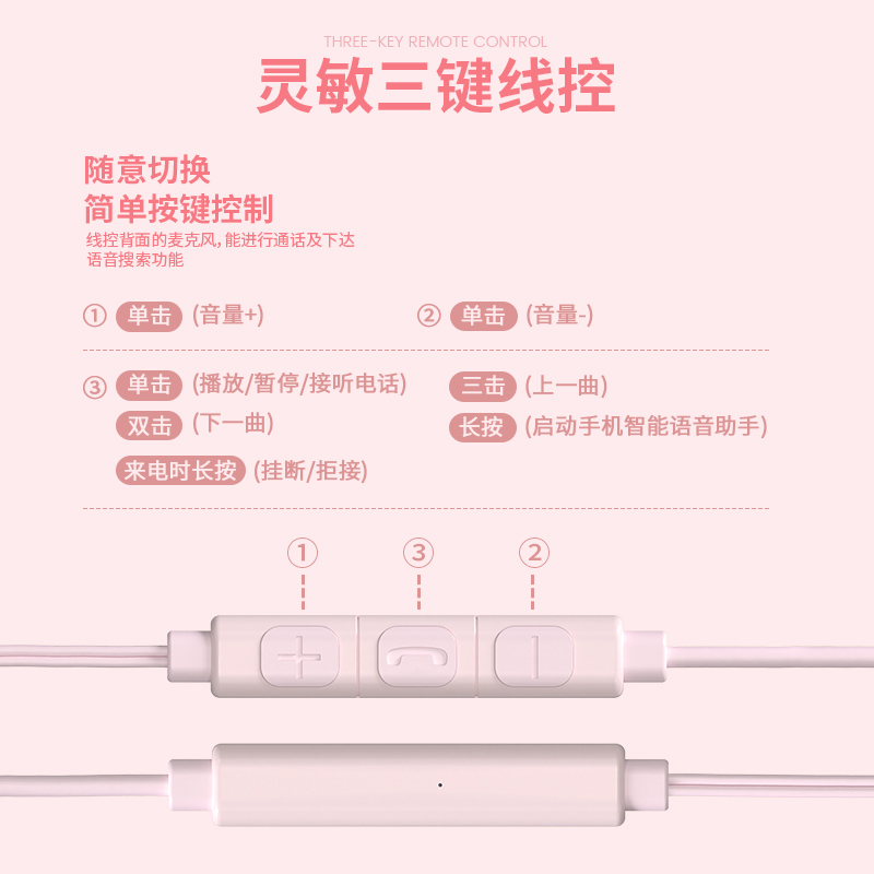 Headphones wired in ear style high sound quality pink girls cute sleep applies oppo Huawei vivo Xiaomi apple Android phone special computer 3 5mm original dress typec earplug style
