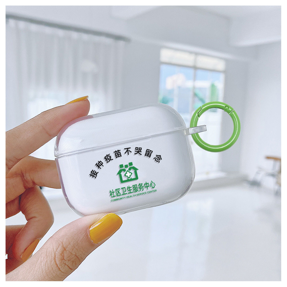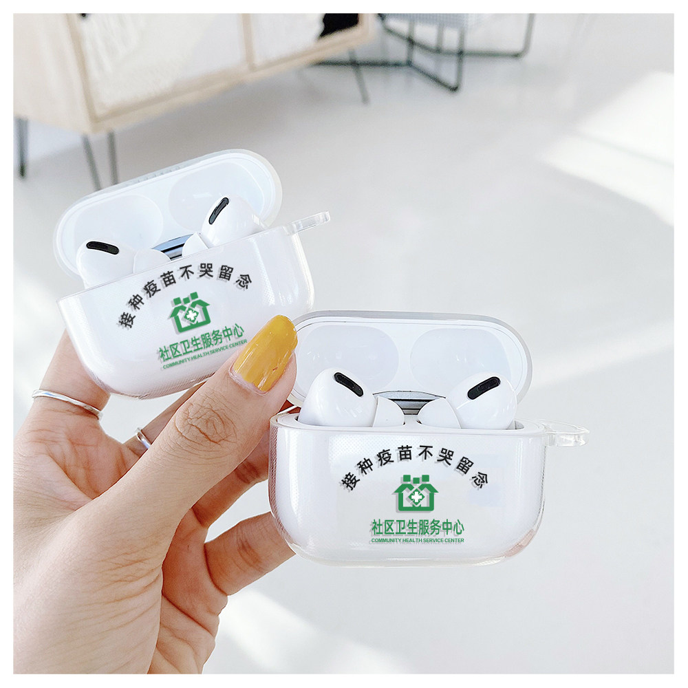 Vaccination without crying cute creative application of Apple headset shell AirPods 1 2 generation protective shell Pro soft soft suit 3 generation transparent silicone fun taste personalized text belt hanger anti-loss