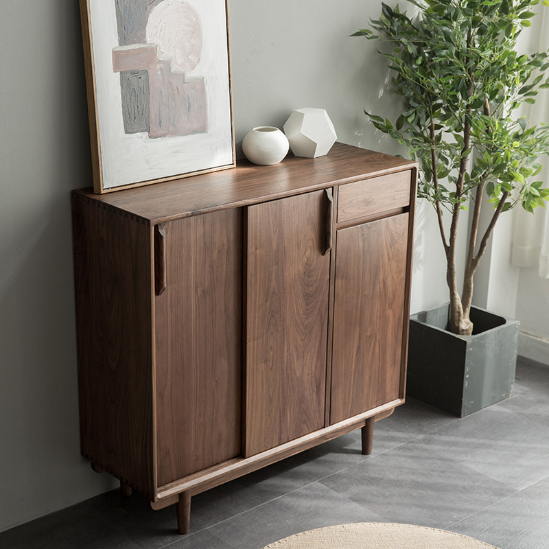 Nordic solid wood shoe cabinet home large-capacity storage cabinet simple modern storage cabinet black walnut partition porch cabinet