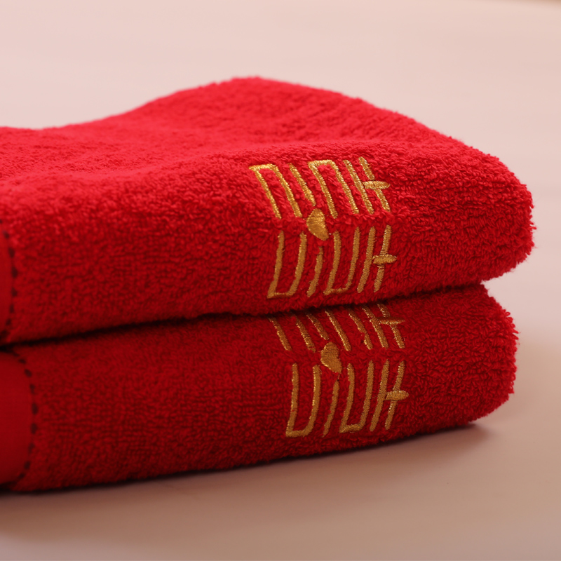 Happy red wedding towel pair of high-end pure cotton soft back to absorb water speed dry towel with hand gift