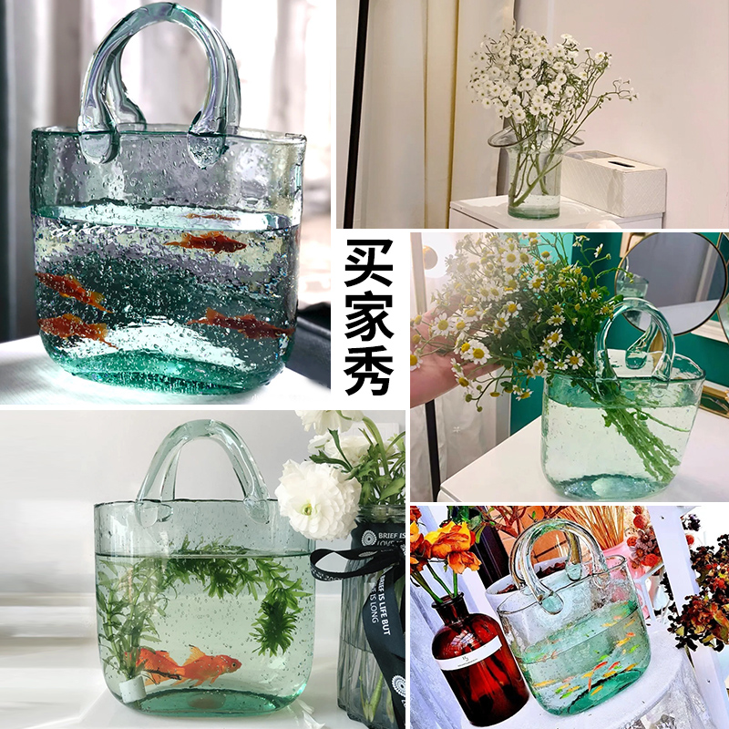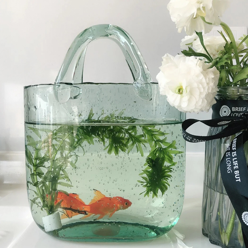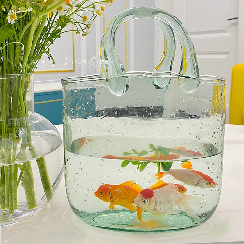 (Pale Blue) Package Fish Tank No Ornament] (Pale Blue) Bag Fish Tank Shell Transparent Bag Fish Tank Bag bag View Suit (Store Length Recommended) Package fish tank 1 bunch European-style powder lily bag-coated fish