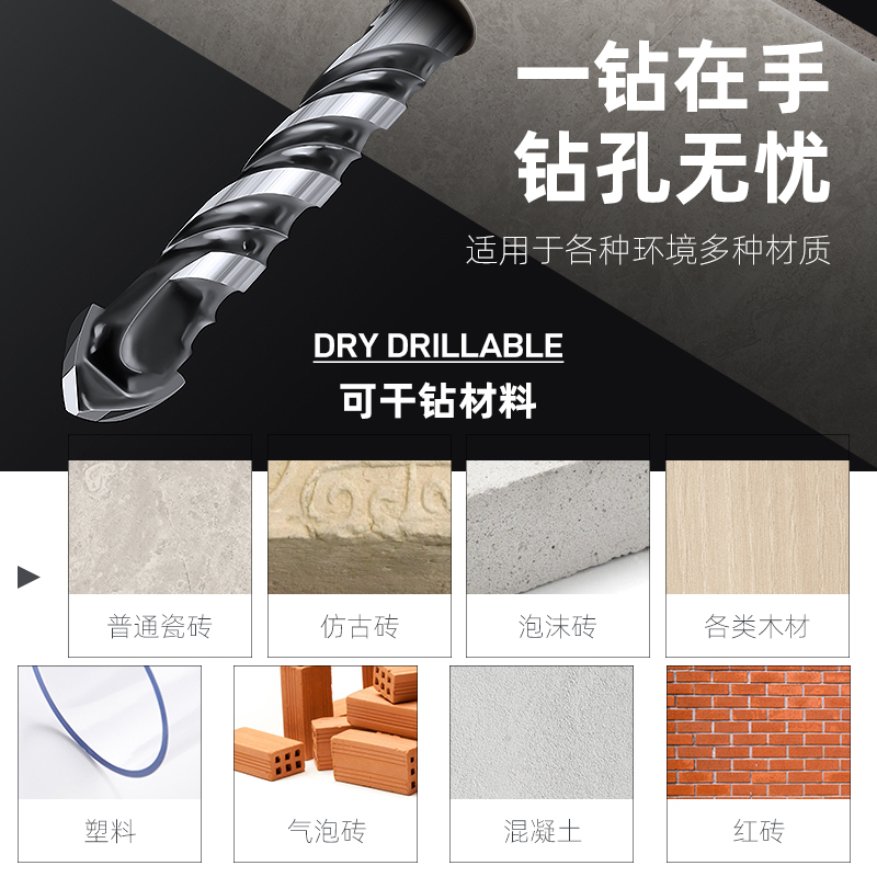 Deli tile drill bit 6MM super hard alloy punched glass concrete cement woodworking multi-functional triangle rotor