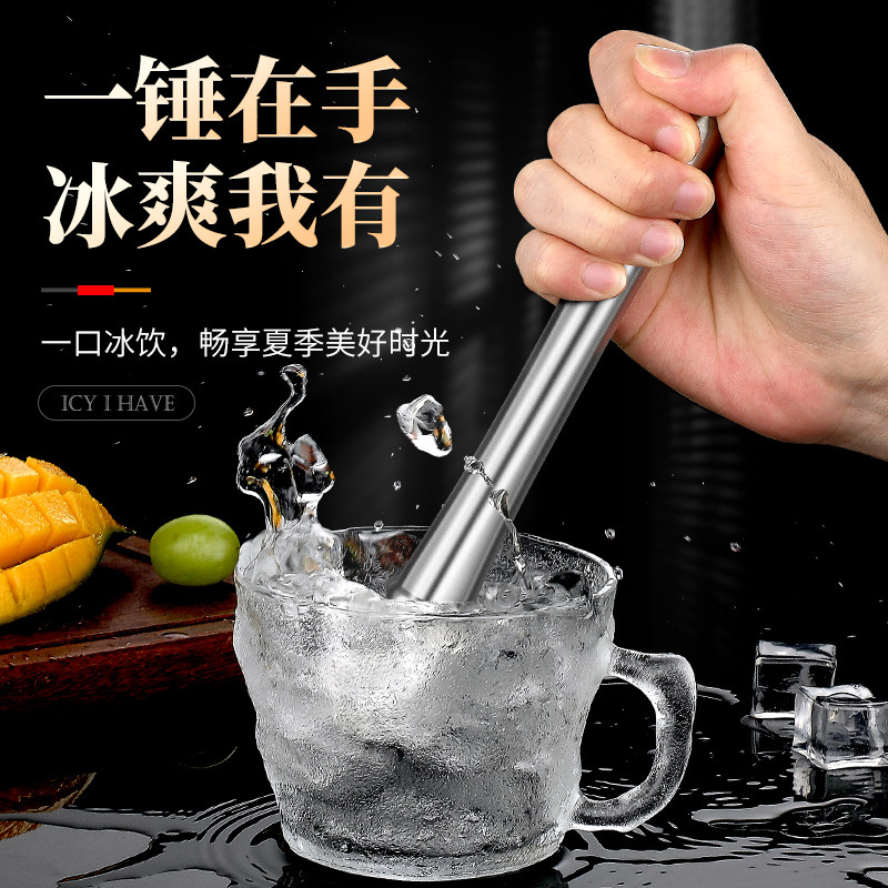 Stainless Steel Crushed Ice Bar Hand Beating Lemon Hammer Fruit Press Juicing Stick Ice Hammer Milk Tea Shop Ramming Stick Trick Stick With a Wine Hammer