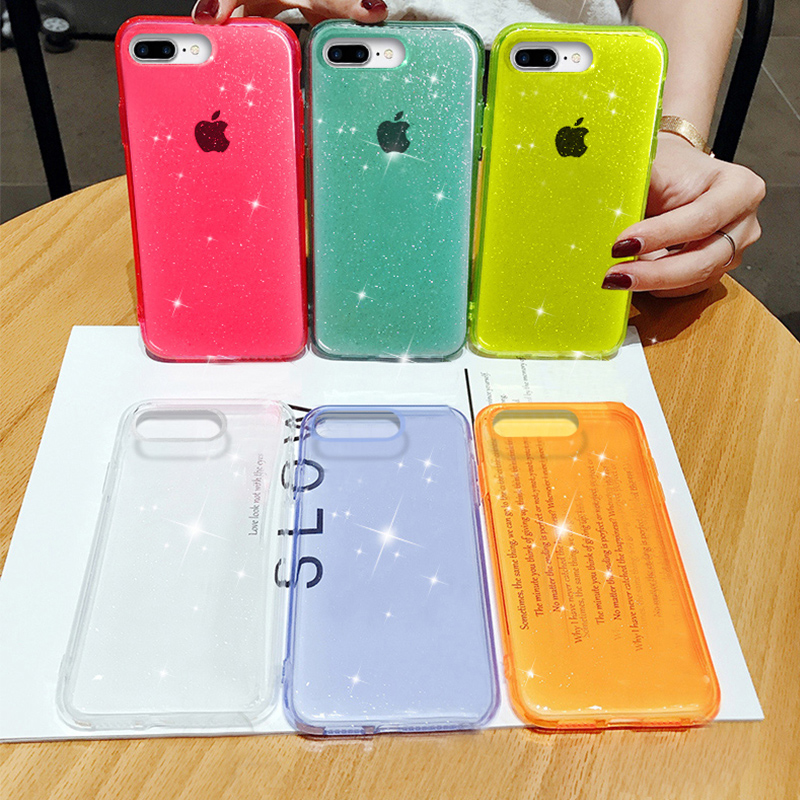 iPhone8 mobile phone case Apple 7plus flash powder silicone soft shell 8plus transparent 7p drop-resistant xr ultra-thin case xsmax shell 6p all-inclusive high-end 6sp seven or eight net red tide