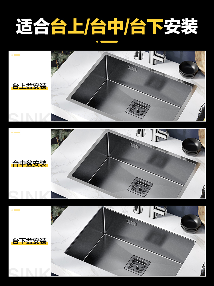 A1 standard set nano single sink 58x 46cm A2 with hot and cold faucet set nano single sink 58x 46cm A3 with stainless steel pull faucet set nano single water
