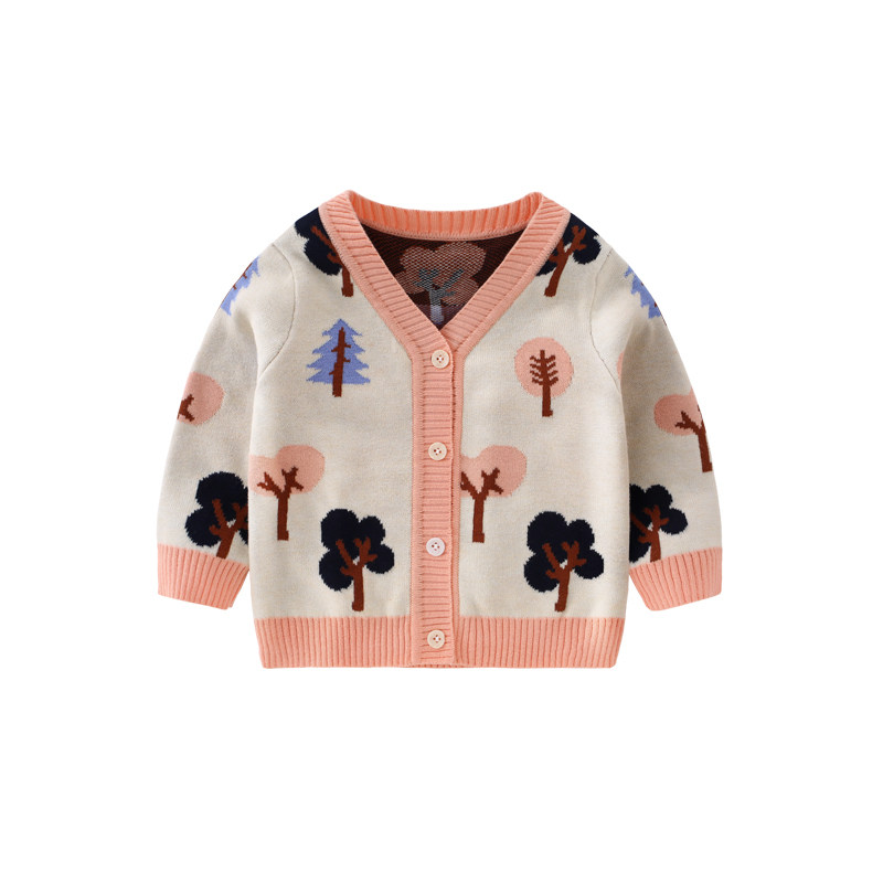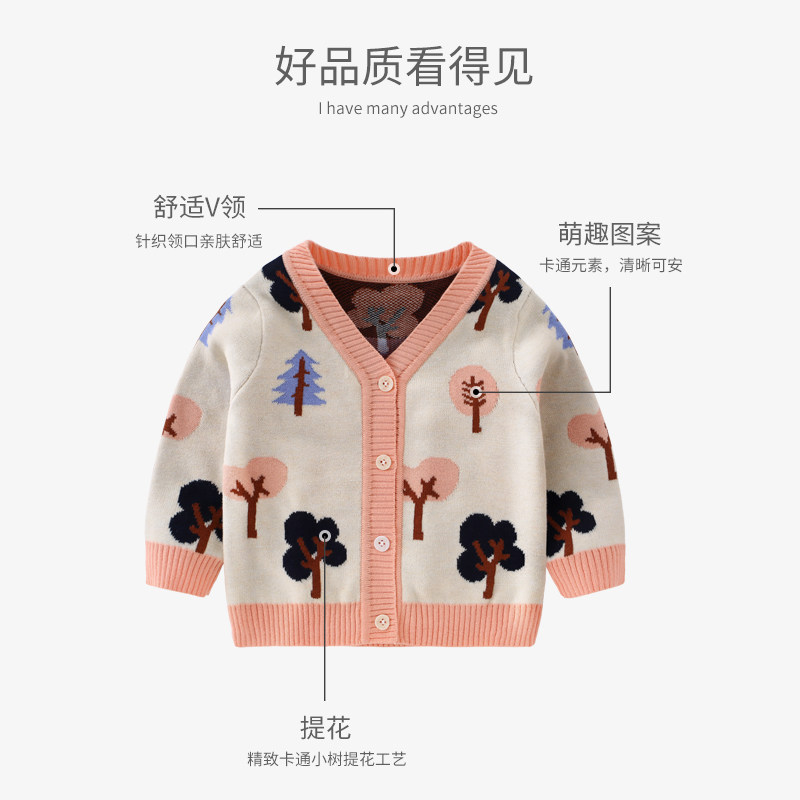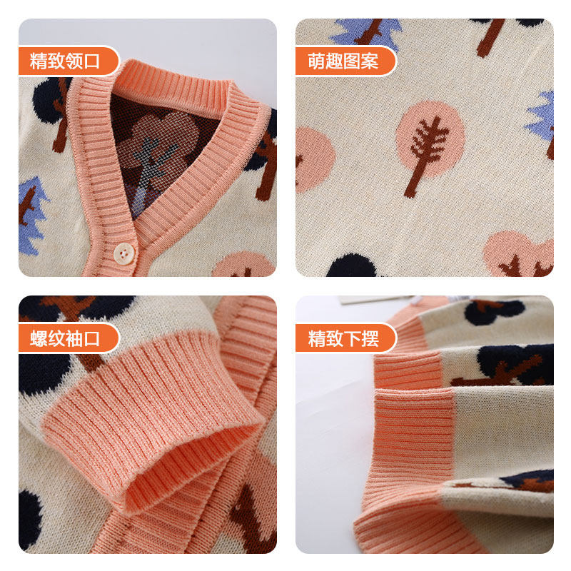Children's knitted sweater pure cotton girl's cardigan Korean version baby V-neck coat toddler sweater children's spring and autumn tops