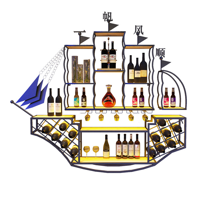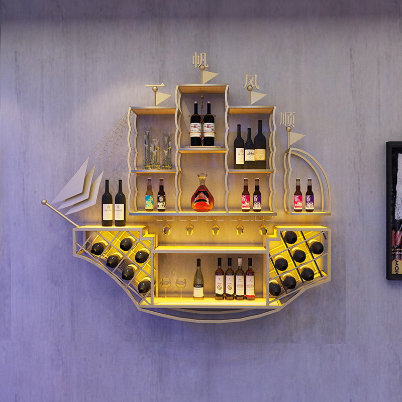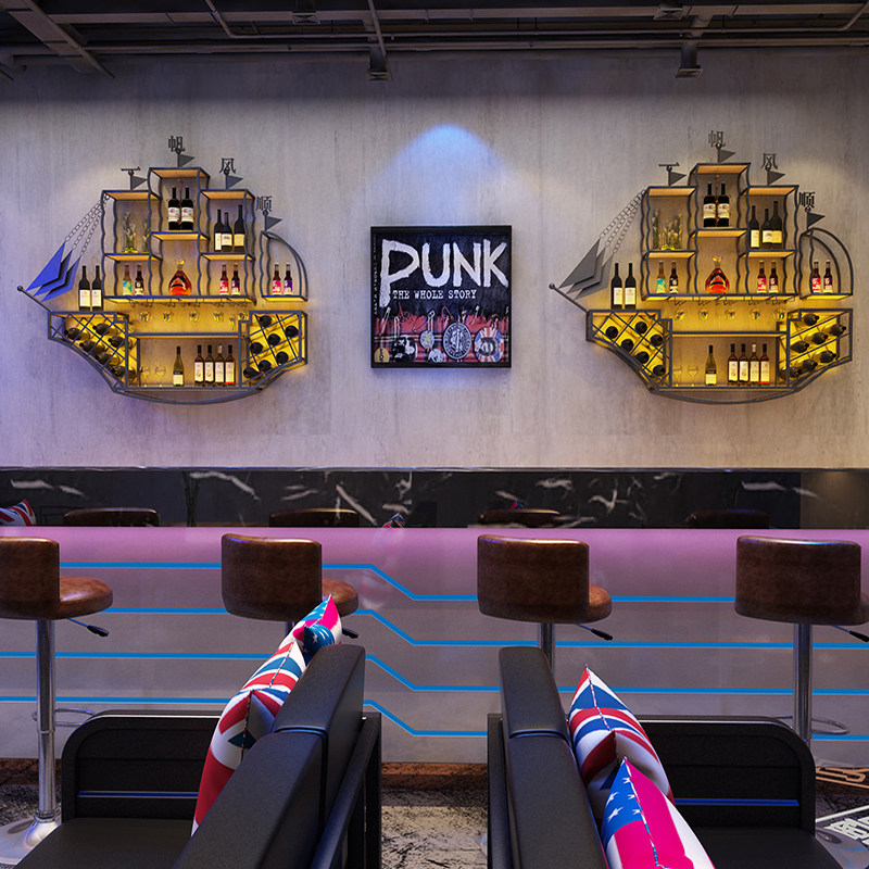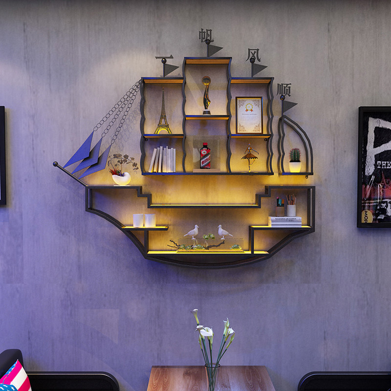 Bar barbecue wrought iron wall hanging decoration luminous net red sailboat map wine beer storage display wine rack bookcase