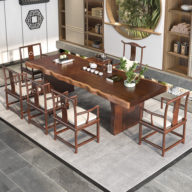 New Chinese-style large board solid wood tea table and chair combination tea table log tea table Kung Fu Zen drinking tea table tea table