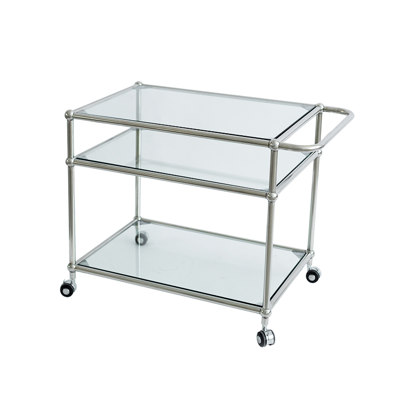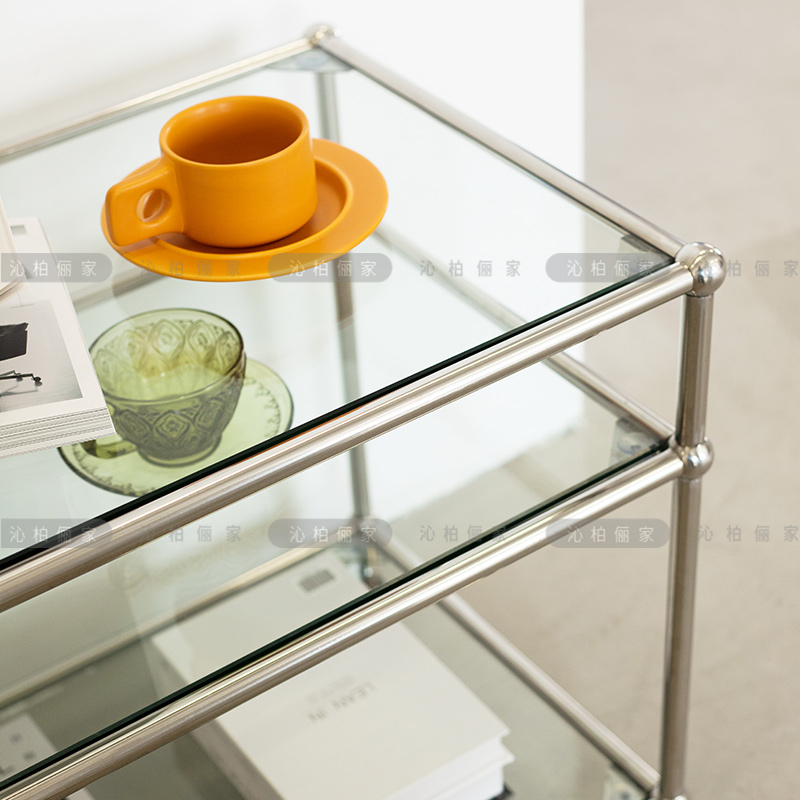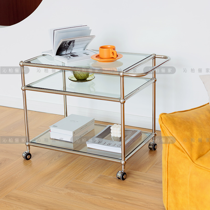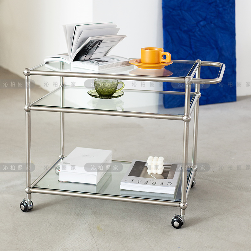 Nordic stainless steel transparent glass trolley photo decoration corner several dining carts movable outdoor dessert trolley