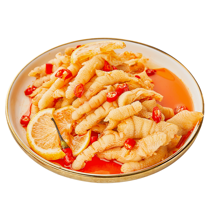 Deboned chicken feet water brewed soy sauce white sugar monosodium glutamate chicken essence seasoning red oil lemon juice brewing soy sauce pepper spice