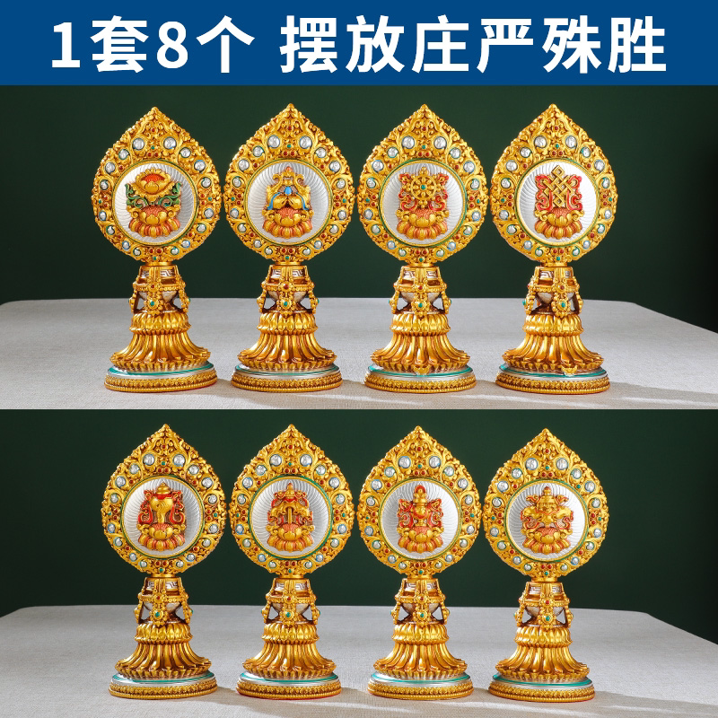 Eight auspicious ornaments, tantric supplies, painted auspicious eight treasures ornaments, Tibetan-style offerings to Buddha, eight auspicious ornaments, Buddha's first eight offering
