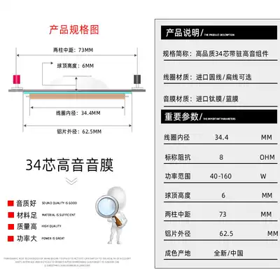 34-core treble voice coil 34 4mm tweeter flat wire titanium film composite diaphragm stage sound horn Horn