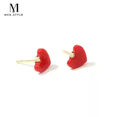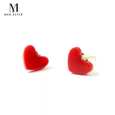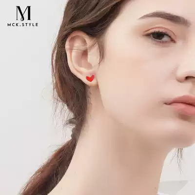 Red love ear needle female senior sense light luxury simple earrings 2021 New Tide niche heart-shaped earrings autumn