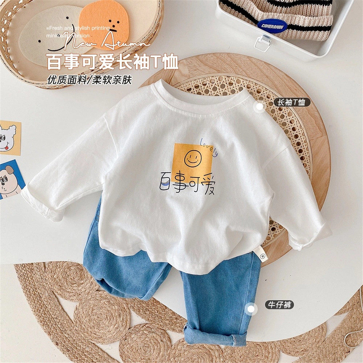 80 - 130 yards boy T - shirt 2023 Spring and Autumn New girl baby early spring white long sleeves bottom cotton