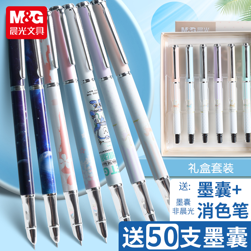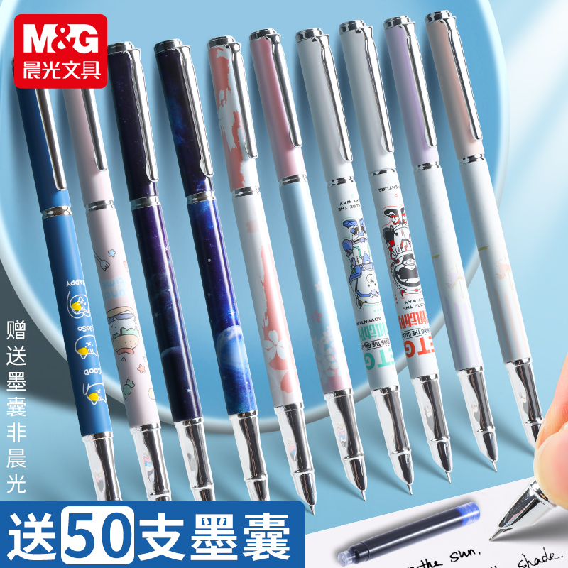 Morning light fountain pen students special elementary school students in third grade with positive posture pen semi-covered tips metal rods Just pen ink sack can replace beginners calligraphy special children's special children's male and female children's exchangeable suit