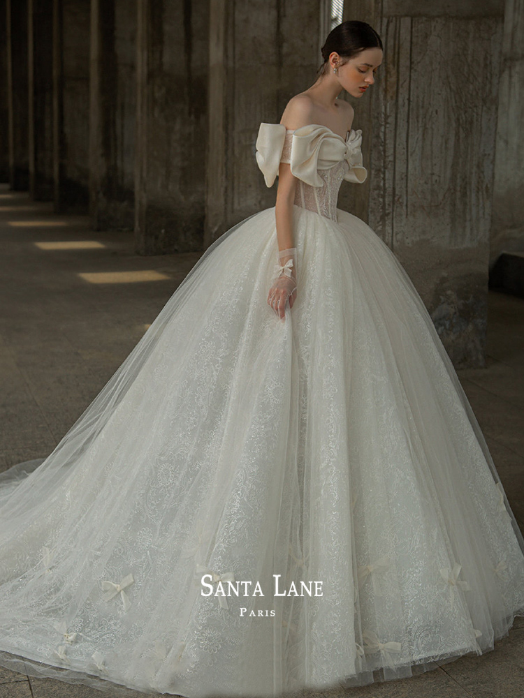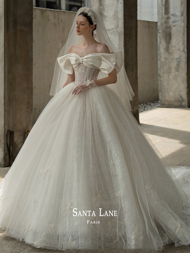 Wedding dress 2021 New Winter bride court style French temperament simple super fairy shoulder main wedding dress big tail