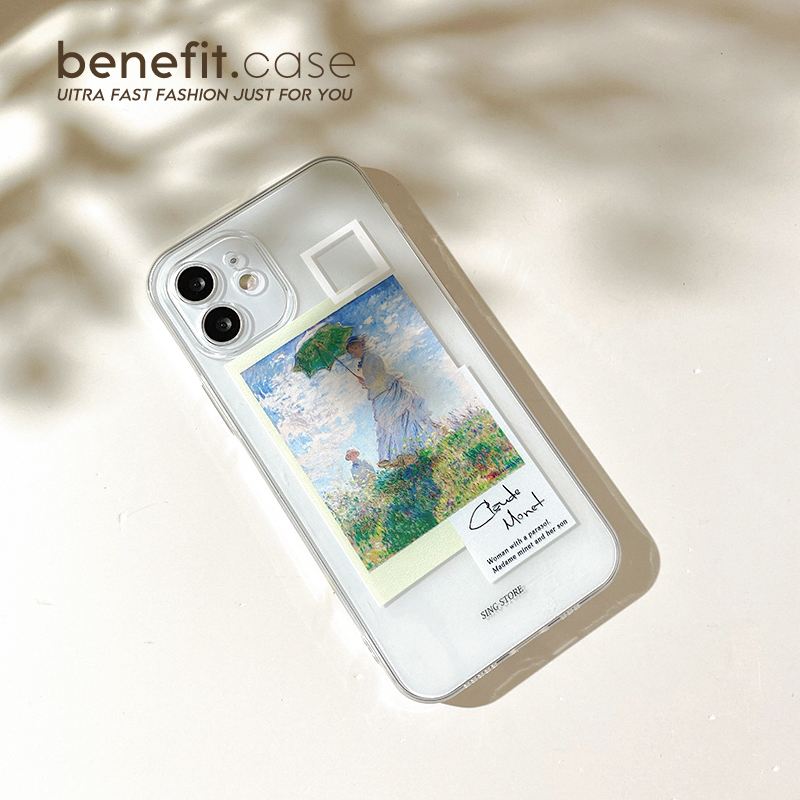 Benefit creative fresh Monet oil painting for Apple 13promax transparent mobile phone protective case iphone12mini protective case xsmax personality xr Japan and South Korea