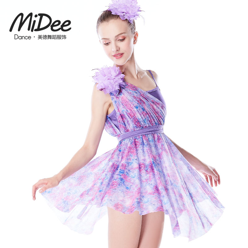 Virtue European and American modern ballet costumes adult purple printed one-piece children's lyrical stage performance costumes