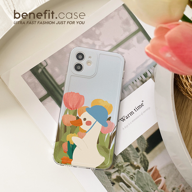 Benefit Korean style oil painting flowers cute duck suitable for apple 13promax mobile phone protective case cute iphone12mini soft 14promax female 11x
