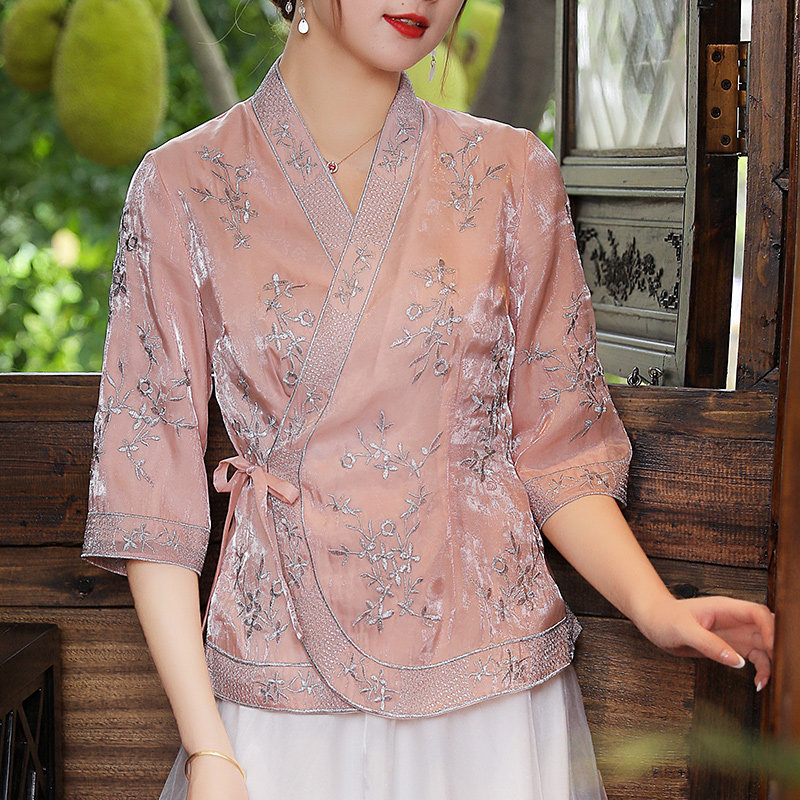 Antique women's summer thin section retro Chinese style embroidery improved Hanfu short straps loose ethnic style top