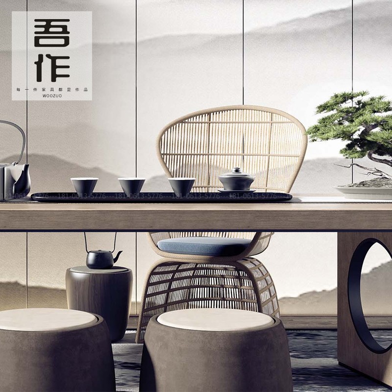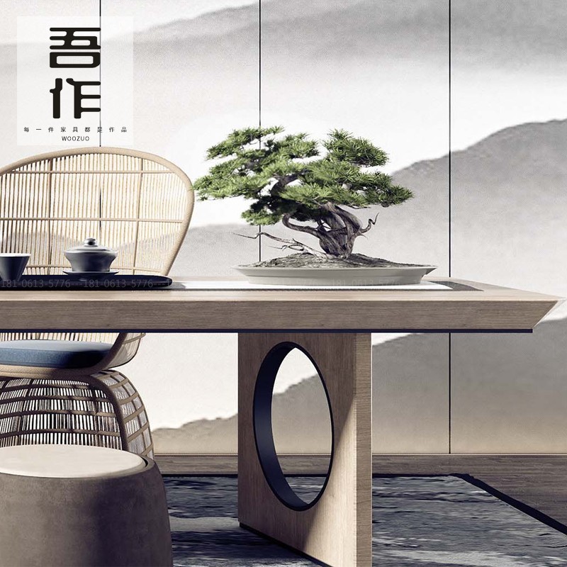 New Chinese style tea table and chairs modern minimalist log study kung fu tea table office business tea art furniture customization