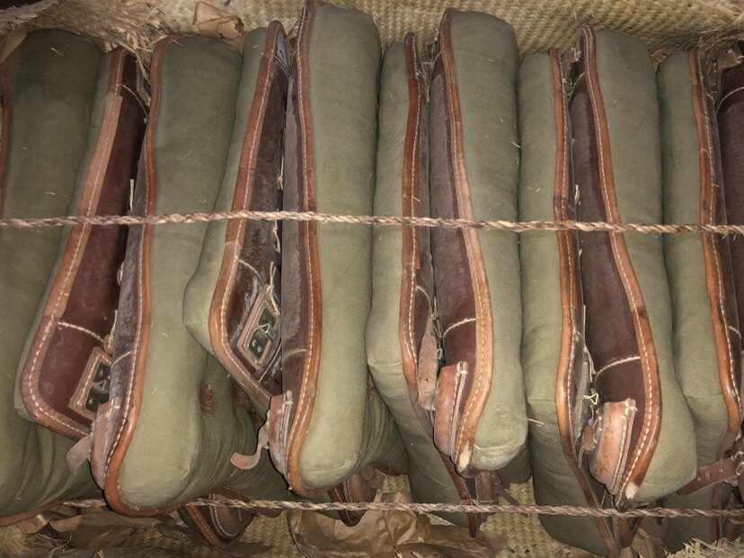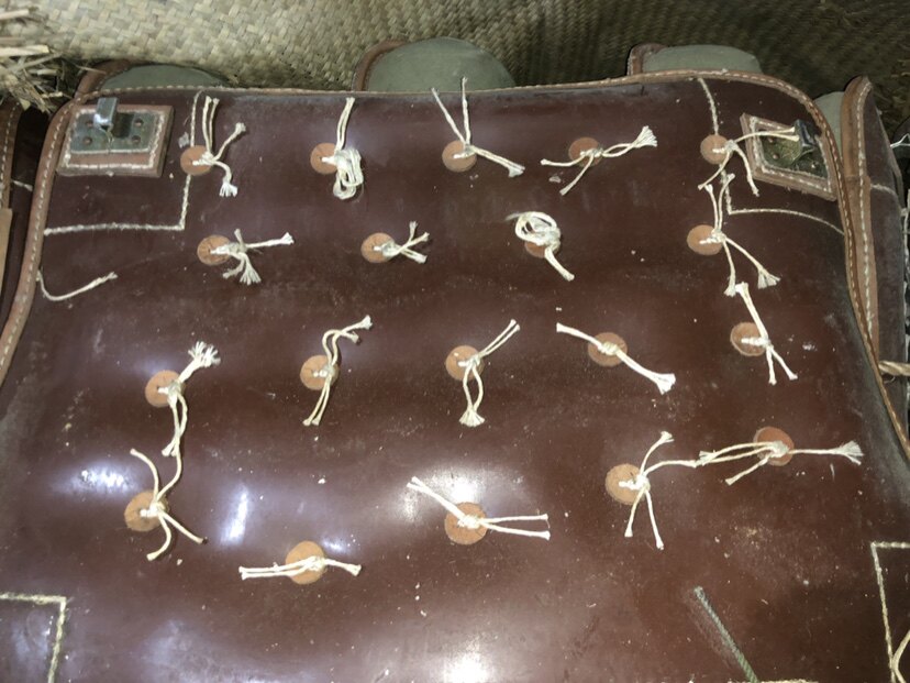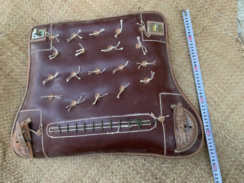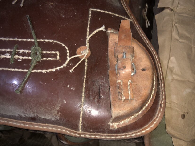 70's 61-style saddle camel with artificial leather leather cowhide side back with horse whip stock old goods collection