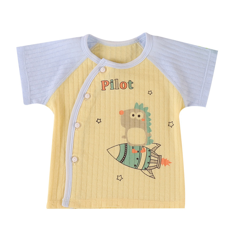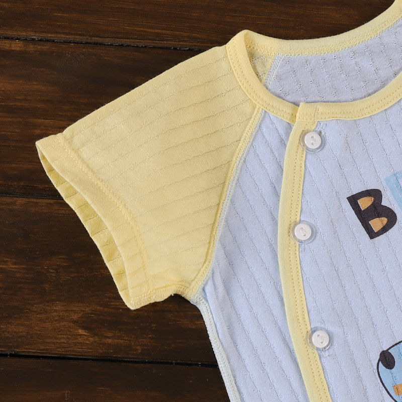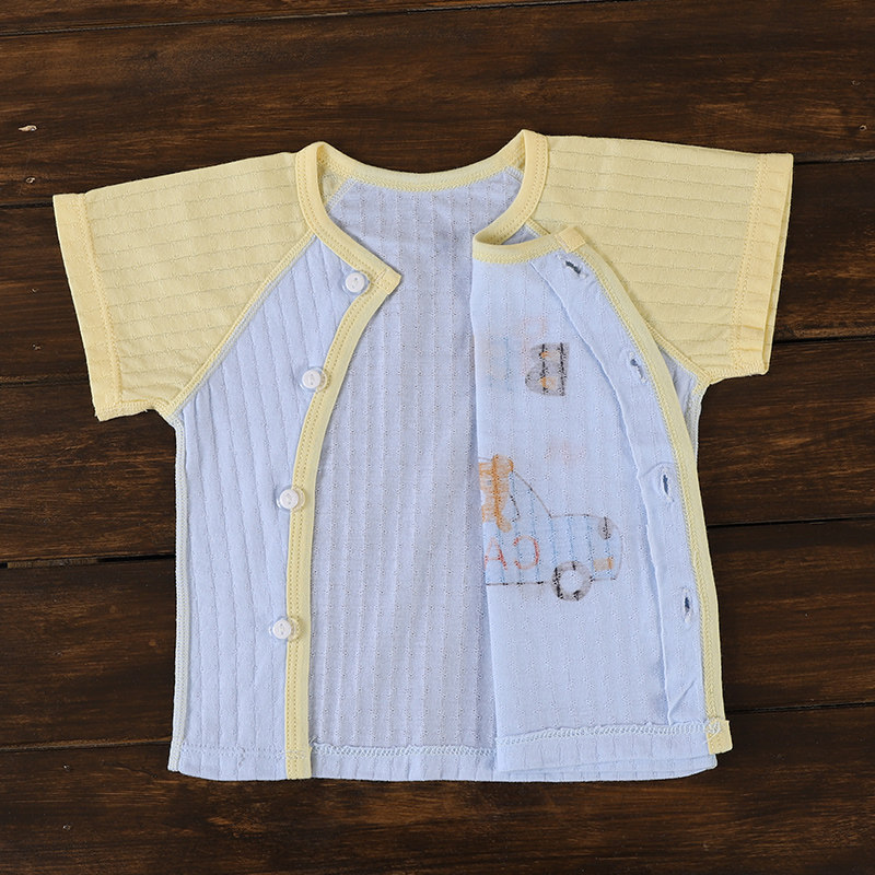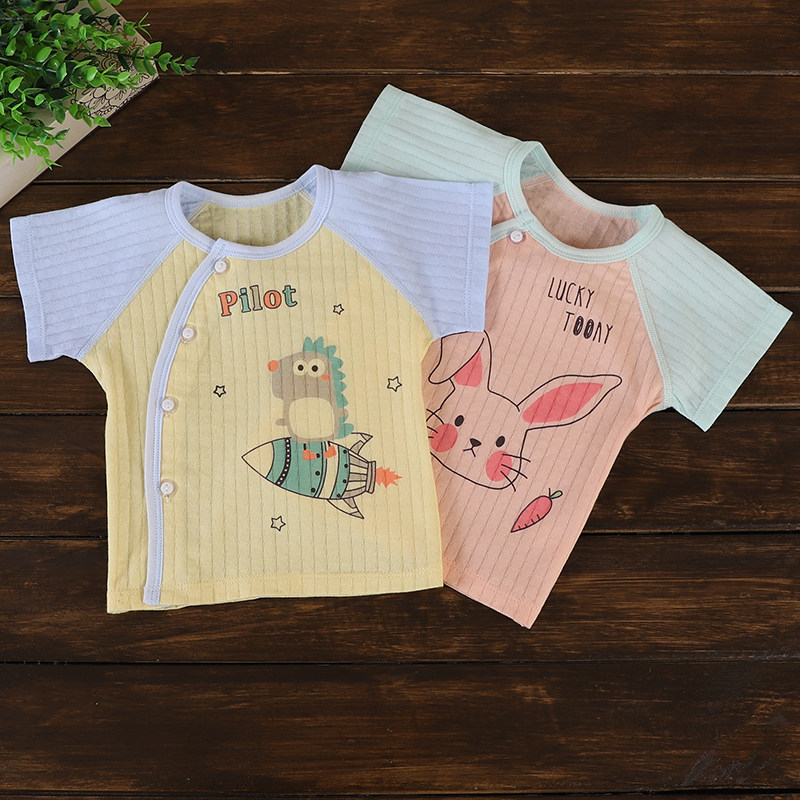 Newborn pure cotton summer thin section short-sleeved men's and women's baby cool breathable T-shirt newborn baby partial button top