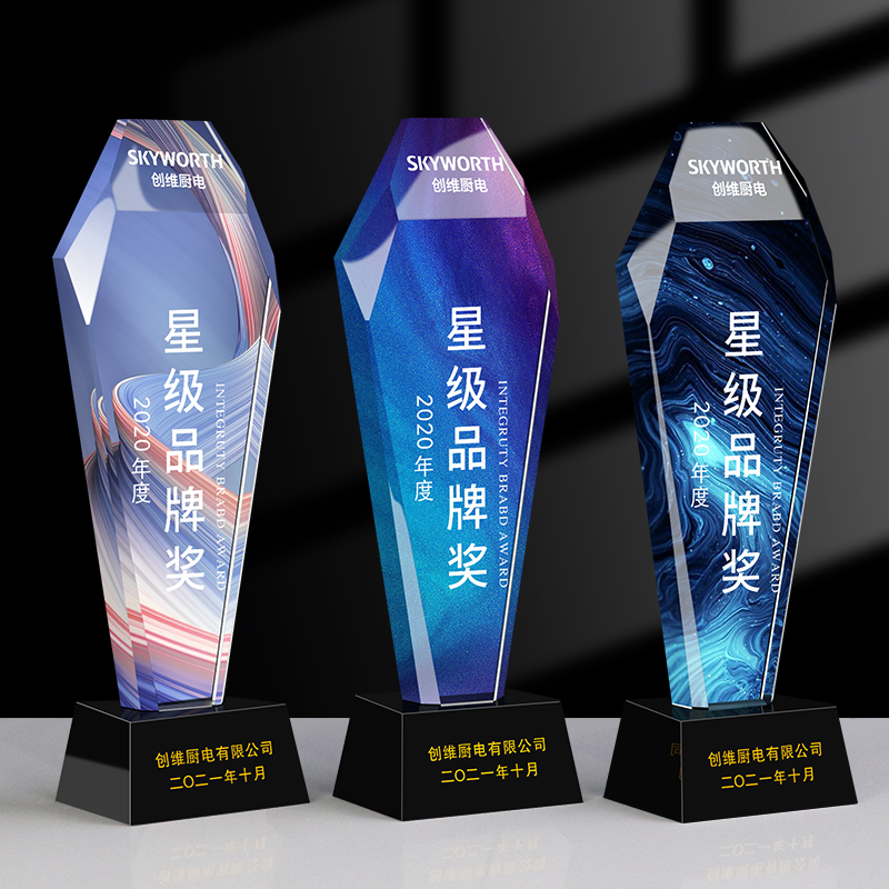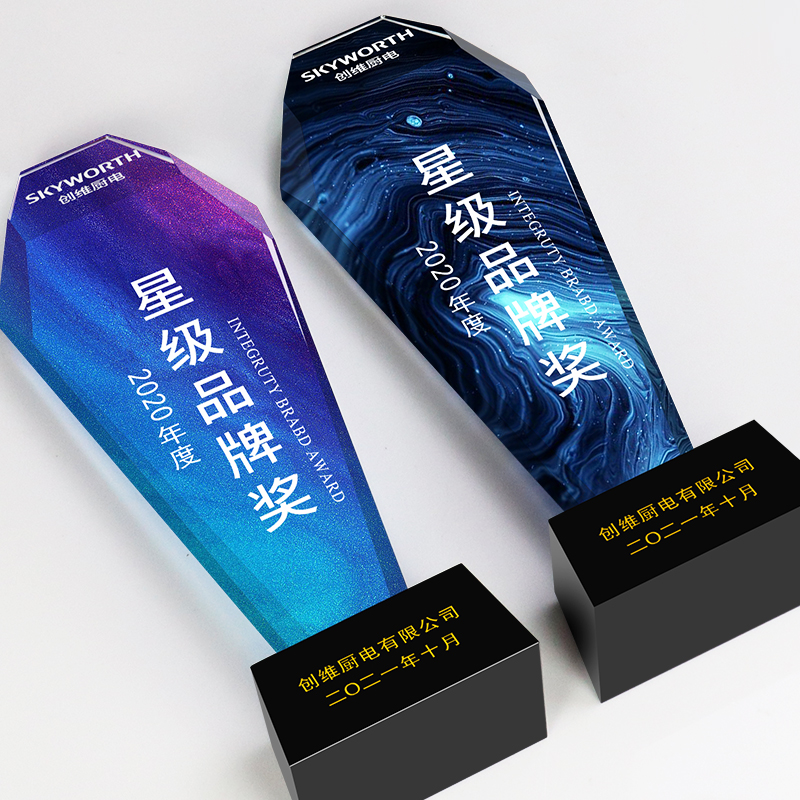 Creative Dazzling Crystal Color Printed Trophy Custom Set Up Excellent Staff Company Honor Grant Awards Competition Plaque