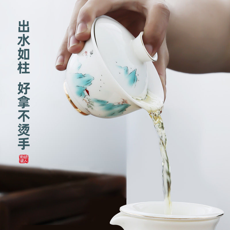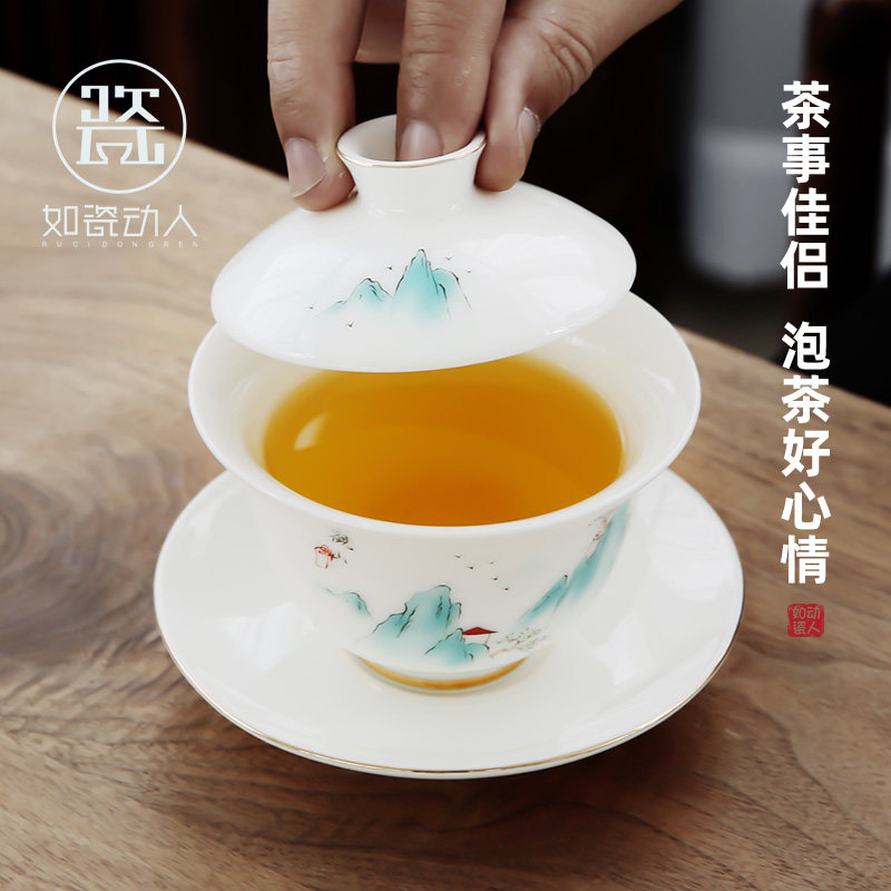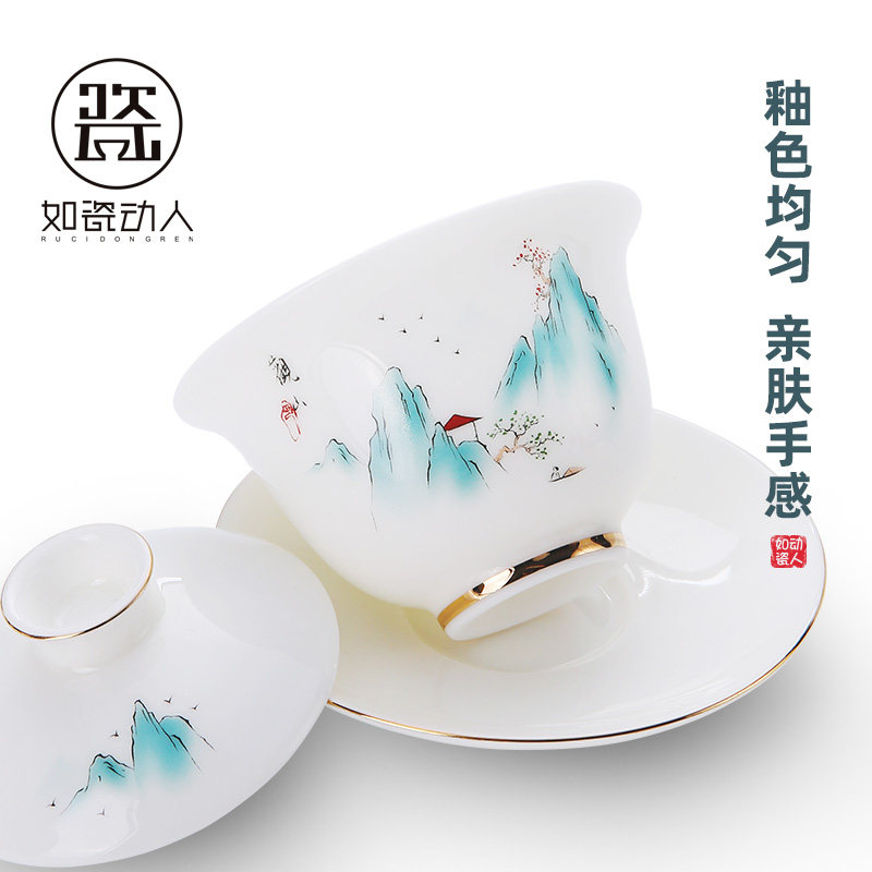 Such as the porcelain fat jade cup cup white ceramic cup cup cup cup cup of tea cup anti-hot tea bowl ceramic three to cover the bowl single