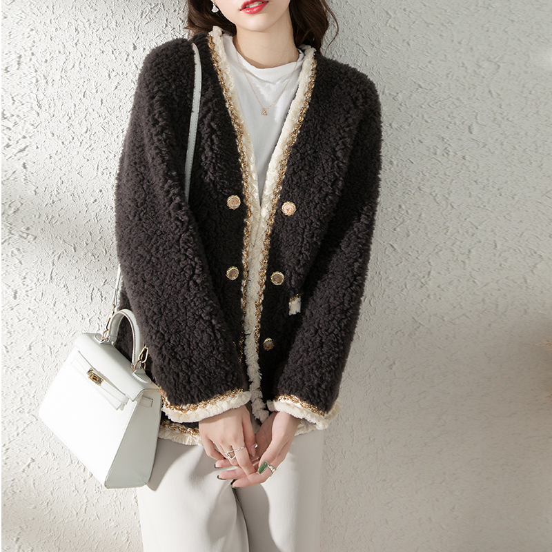 2021 Autumn winter Fried Street Leather Grass Jacket Young small Fragrant Wind Sheep Cut Velvet Big Coat Fur Integrated Female Short