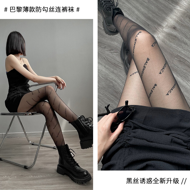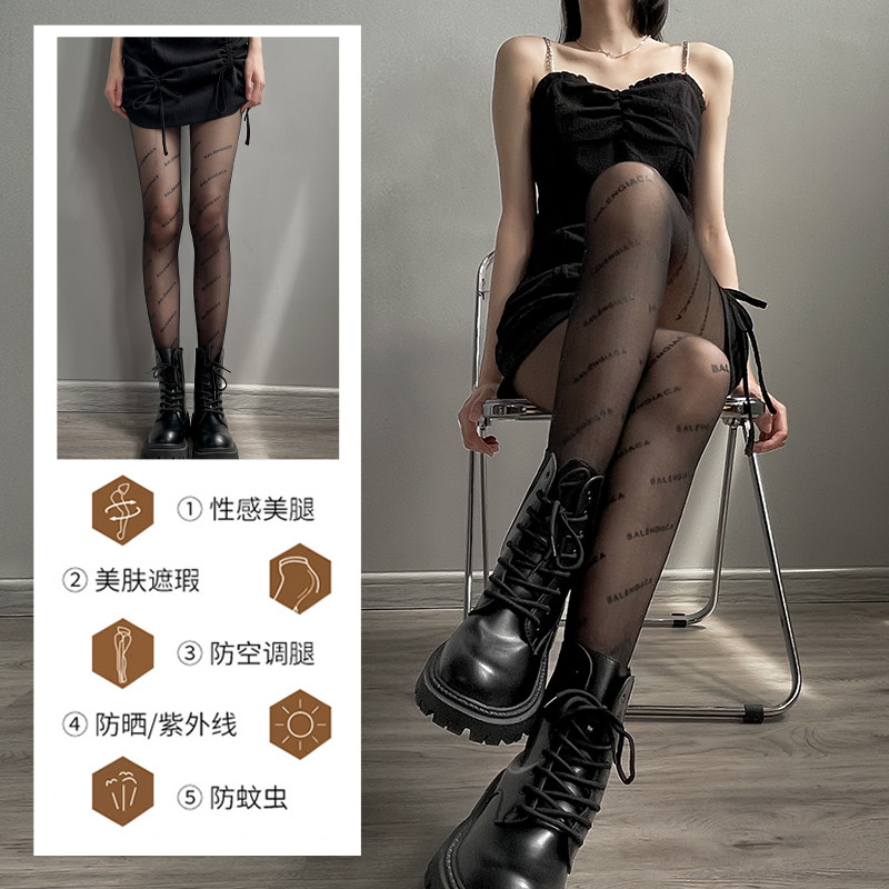 Silk Socks Female Black Silk Ultra Slim Summer Light Leg God Instrumental Sexy Ins Black Silk Screen Red Letters Silk Stockings Anti Seduces