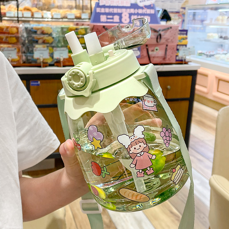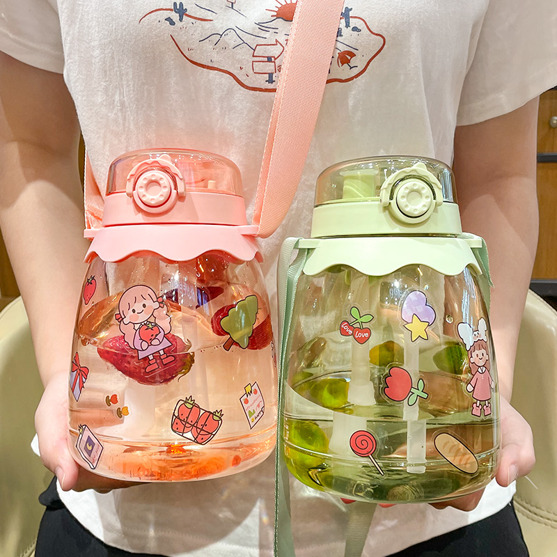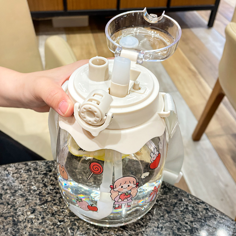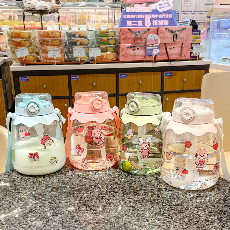 High face value large capacity water glass female summer straw holding baby bag cute portable child plastic kettle 1000ml cup