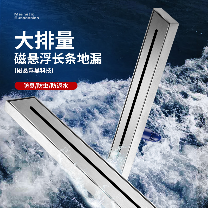 Stainless Steel Floor Drain Makeup Room Bathroom Shower Room Balcony Strip Rectangular Thickened Lengthened Deodorizer