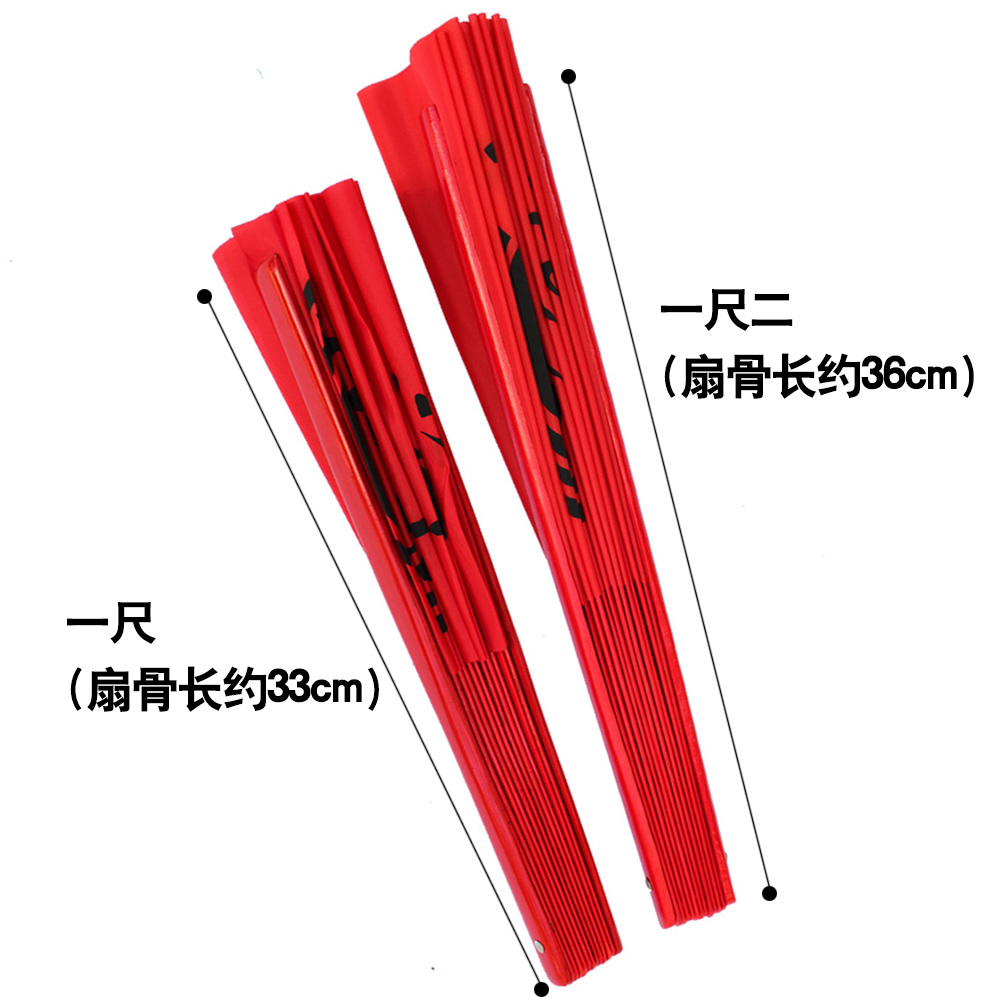 Tai Chi Fan Kung Fu Fan Thickened Bamboo Bone Ring Fan Silk Satin Plain Face Fan Dance Fan Red Martial Arts Performance Fan Folding Fan