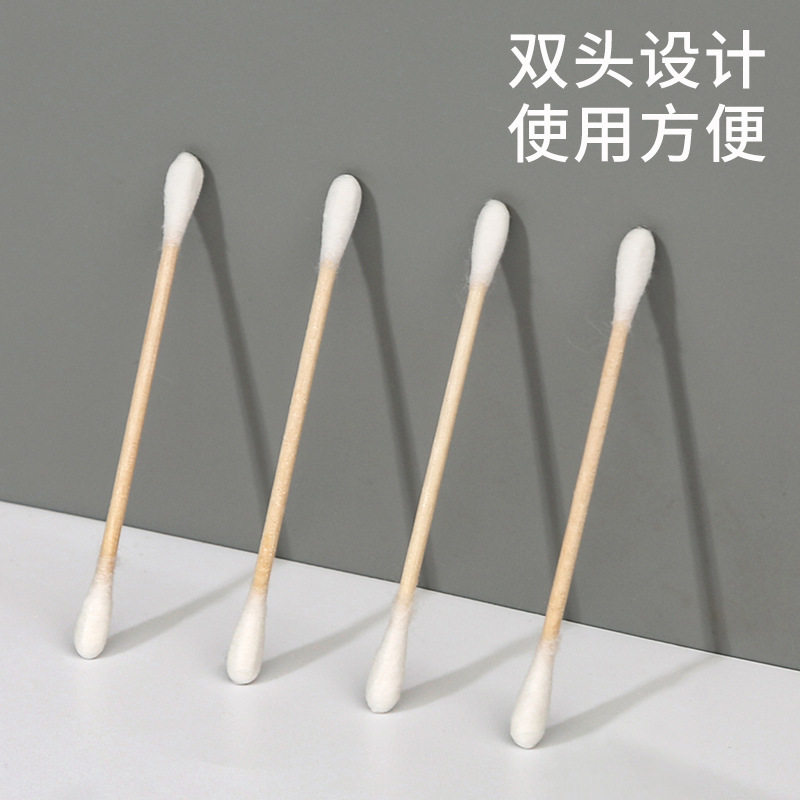 Double head multifunction wood cotton stick digging ear tampon Earner Bag cleaning cotton stick Makeup Digging Ear scoop