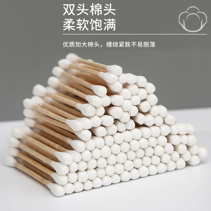 Double head wood stick cotton stick 200 2 packs of adult section (two-in-one dig ear spoons cotton stick) (30 experience fitting) mixed color independent packaging adult section (two-in-one dig earpick cotton stick) (60