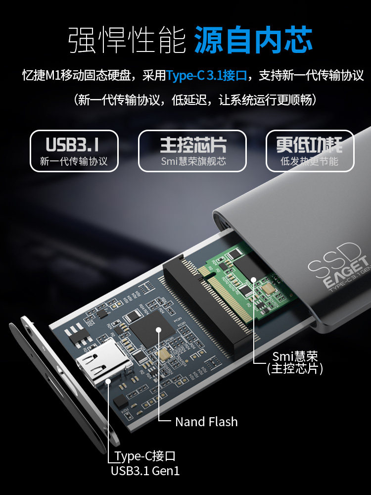 Yijie 1T mobile solid state hard drive mobile phone Type-C MAC external ssd mini portable hard drive expansion 1t