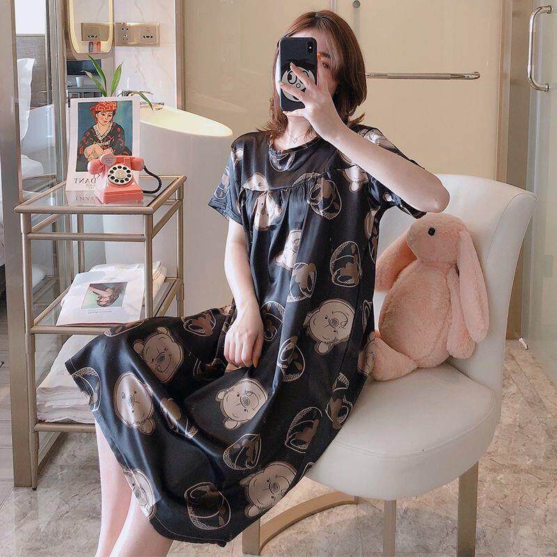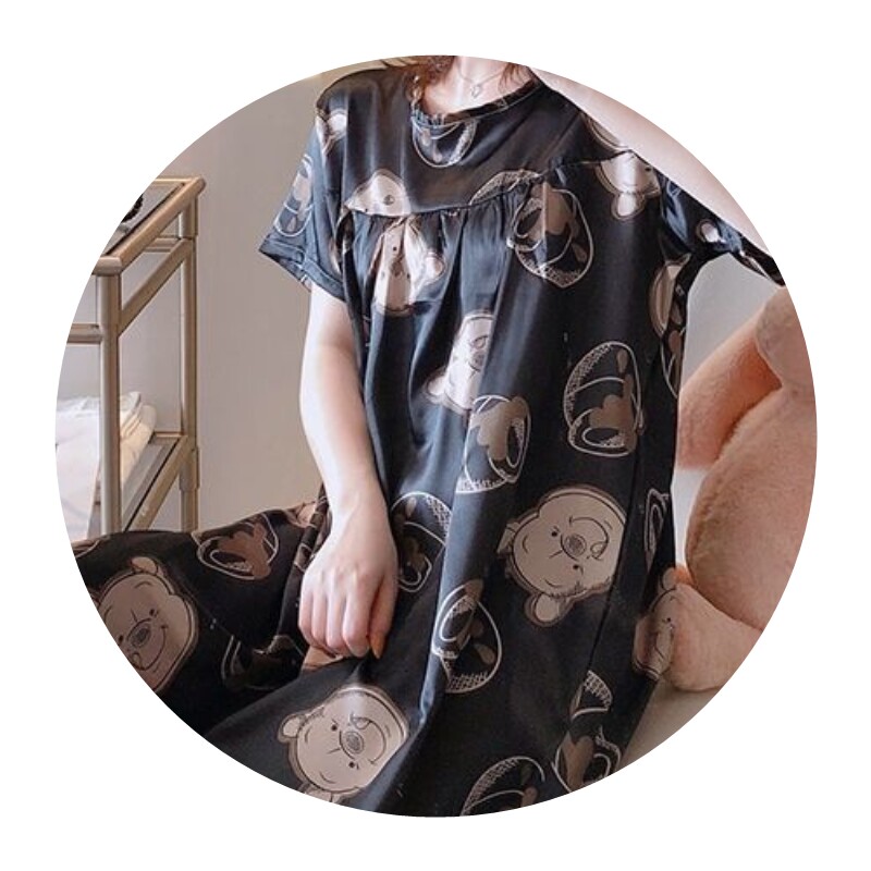 (White Lace Sleeping Skirt) Black Bear Sleeping Dress